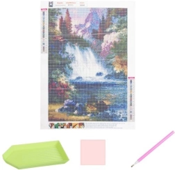 Motiv vodopádu v rozměru 30 × 40 cm (plocha obrázku 25 × 35 cm) vynikne třpytivým efektem a po dokončení se skvěle hodí k zarámování nebo zavěšení bez rámu. Sada je kompletní – vše máte ihned po ruce.