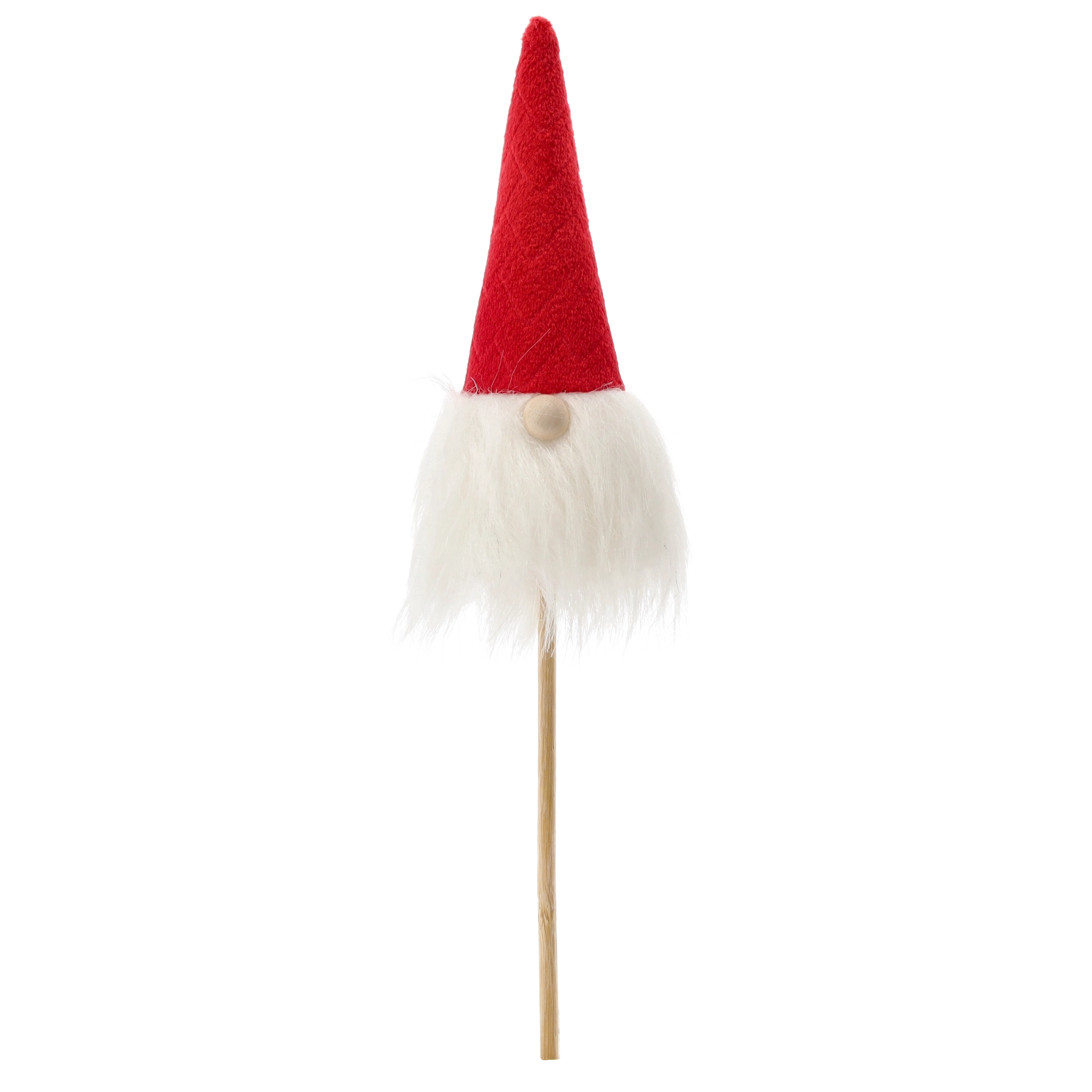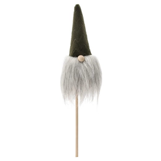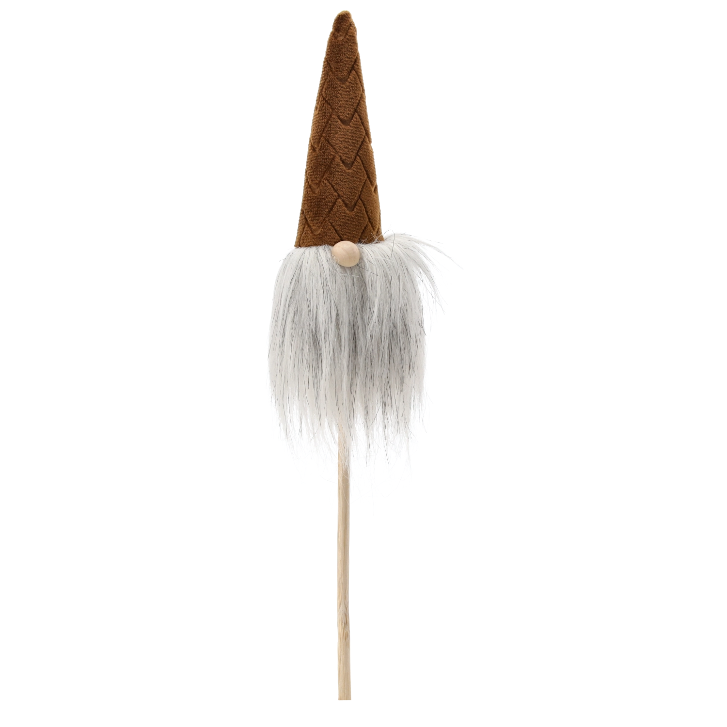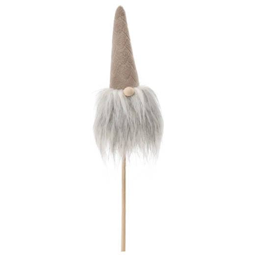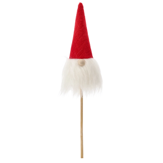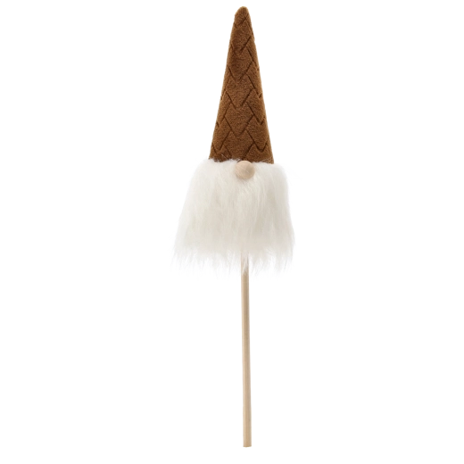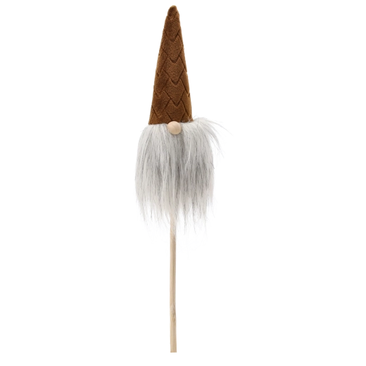 Tento vánoční skřítek je skvělou volbou pro rychlou a efektní výzdobu. Lehká konstrukce na dřevěné tyčce umožňuje snadné zapíchnutí do květináče, věnce nebo aranžmá, zatímco měkké textilie a nadýchané vousy dodávají dekoraci útulný, rustikální vzhled.