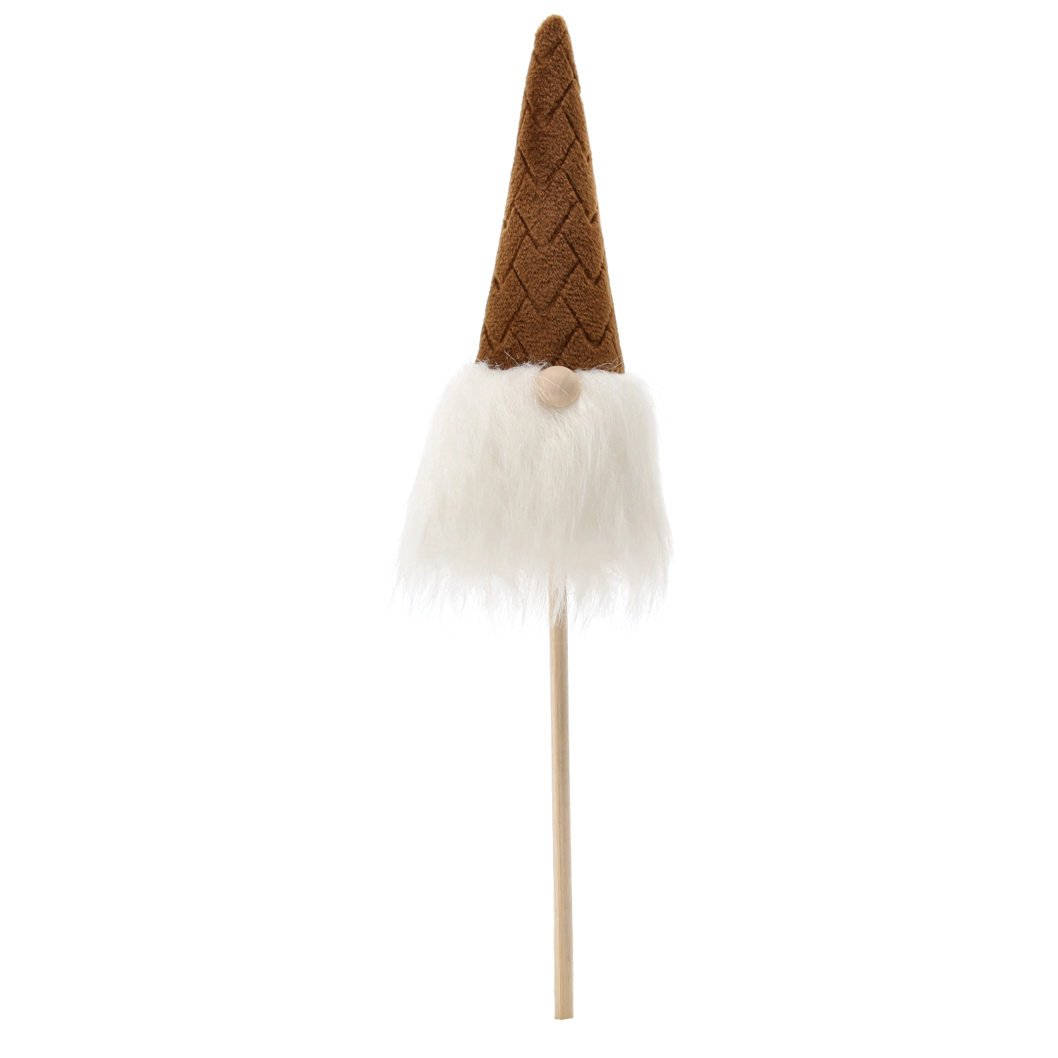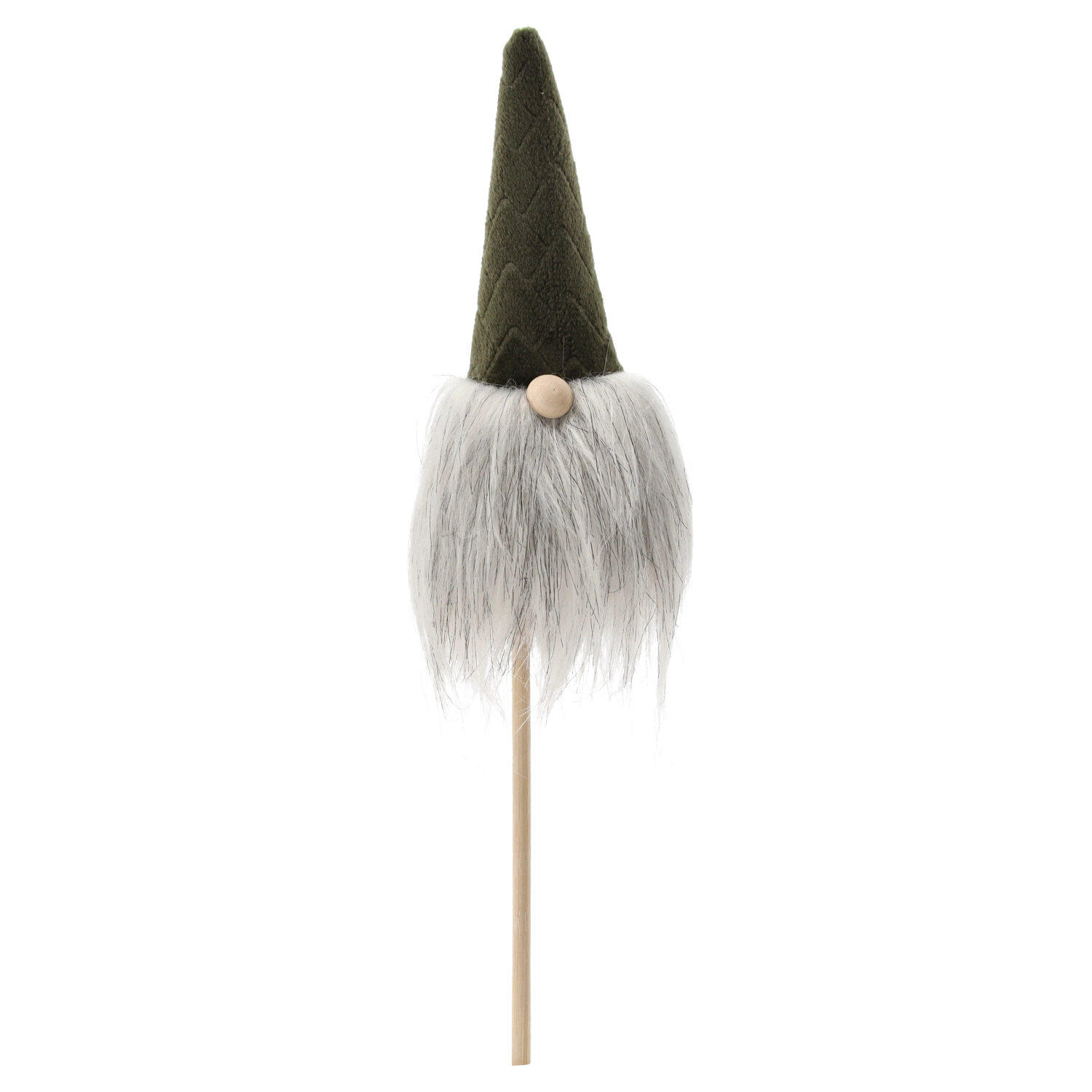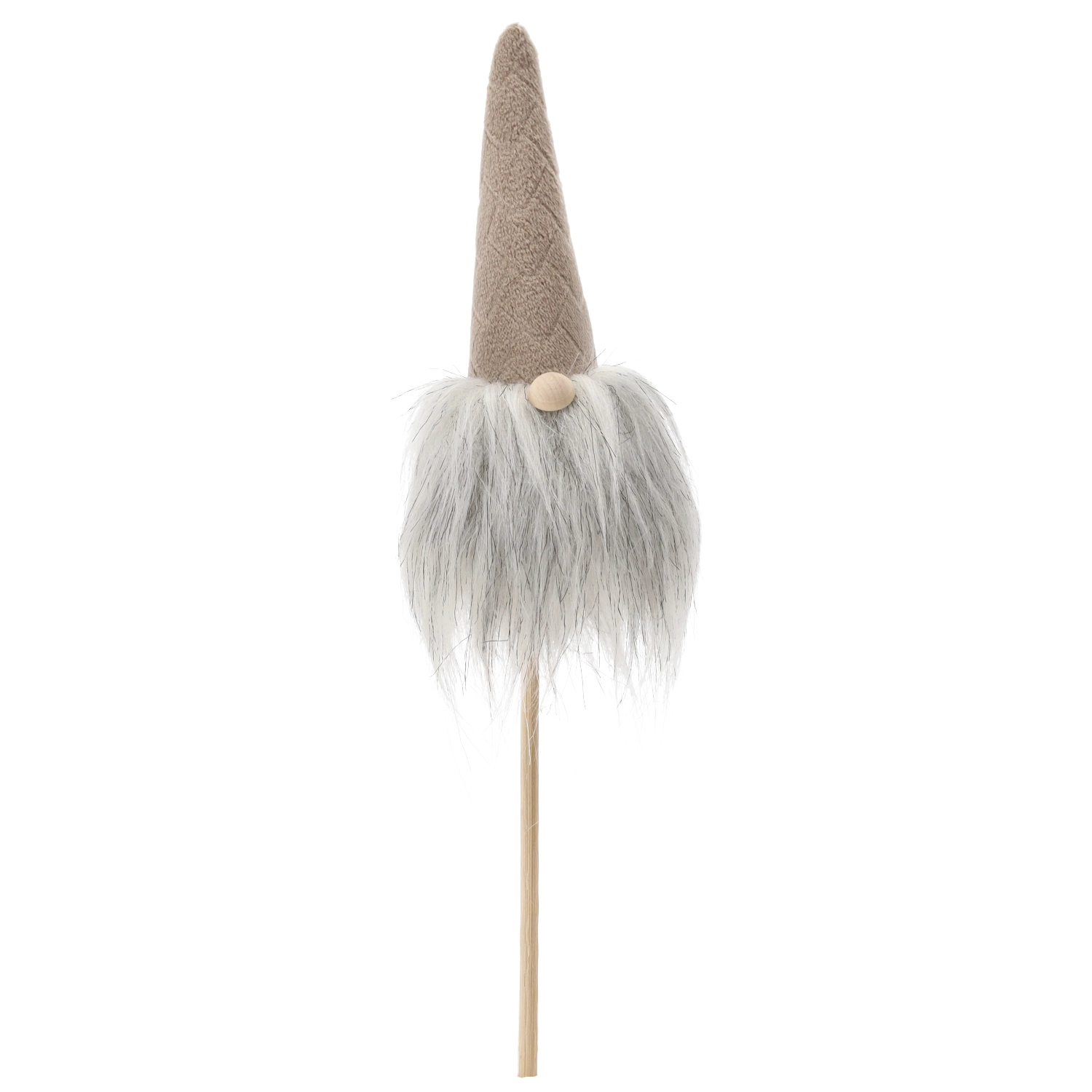 Tento vánoční skřítek je skvělou volbou pro rychlou a efektní výzdobu. Lehká konstrukce na dřevěné tyčce umožňuje snadné zapíchnutí do květináče, věnce nebo aranžmá, zatímco měkké textilie a nadýchané vousy dodávají dekoraci útulný, rustikální vzhled.