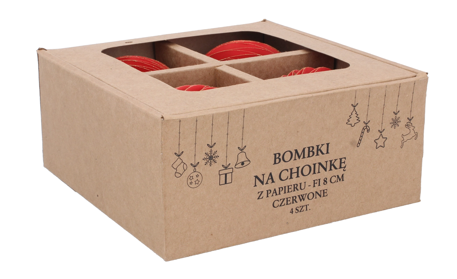 Tato sada čtyř červených ozdob dodá vašemu domovu tradiční a elegantní vánoční atmosféru. Díky pečlivě zvolenému papírovému materiálu jsou ozdoby lehké, bezpečné a netříštivé, takže se skvěle hodí do rodinných interiérů. Univerzální průměr 8 cm a sytá barva se snadno kombinuje s dalšími dekoracemi.