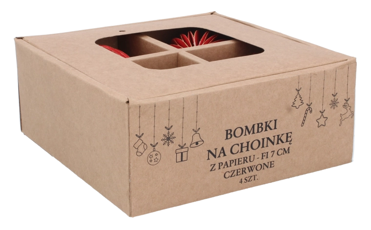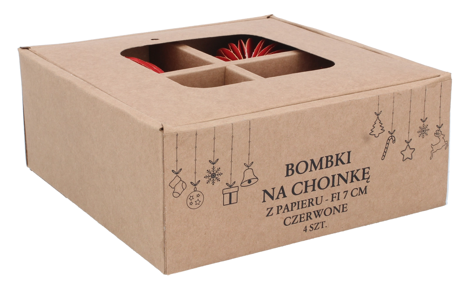 Tato sada čtyř papírových vánočních ozdob je ideální pro ty, kteří hledají vkusnou a lehkou dekoraci na vánoční stromek, věnec nebo sváteční aranžmá. Kvalitní zpracování a sytý červený odstín dodají interiéru teplou a stylovou atmosféru.