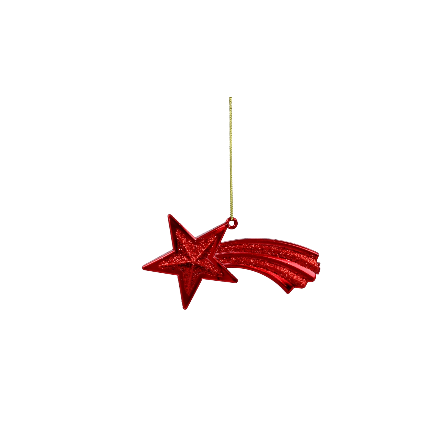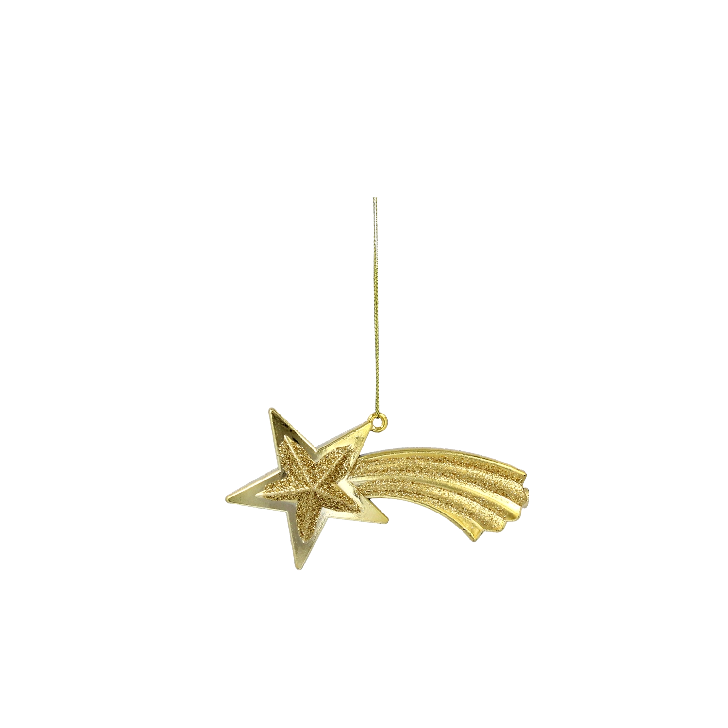 Zlatá padající hvězda krásně odráží světlo a dodá výzdobě luxusní nádech. Lehká konstrukce je šetrná ke větvičkám.