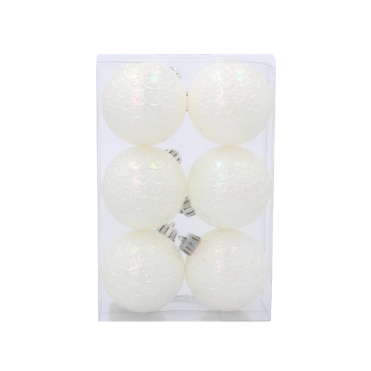 Elegantní sada bílých vánočních koulí o průměru 6 cm dodá stromku čistý a stylový vzhled. Lehký a netříštivý plast je bezpečný pro děti i mazlíčky a díky praktickým poutkům je zavěšení rychlé a snadné. Skvěle se kombinuje s červenou, zlatou i stříbrnou výzdobou.