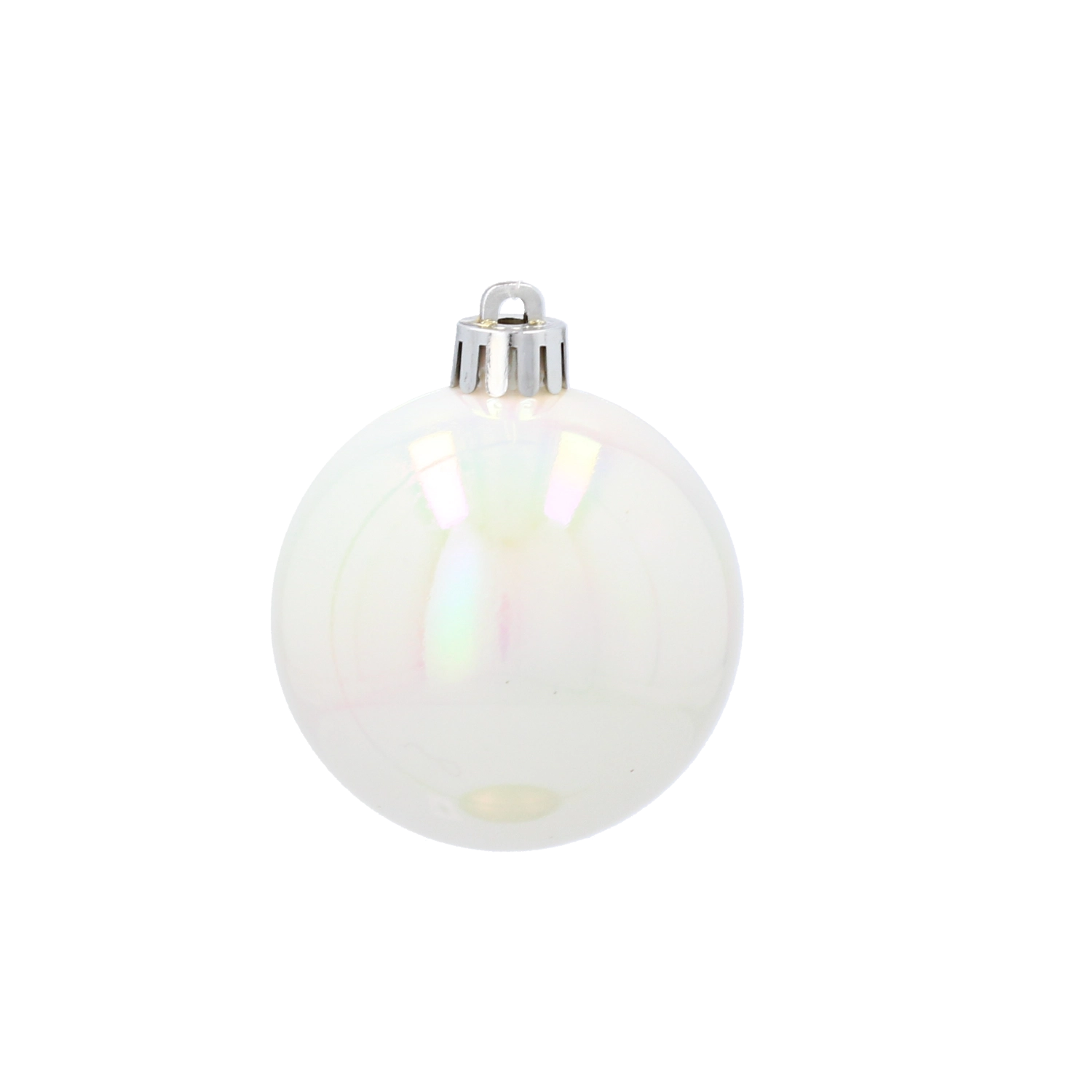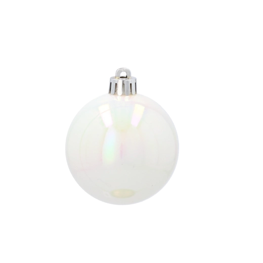 Iridescentní perleť odráží světlo s jemným leskem, zatímco facetový vzor přidává hloubku a jiskru sváteční výzdobě.