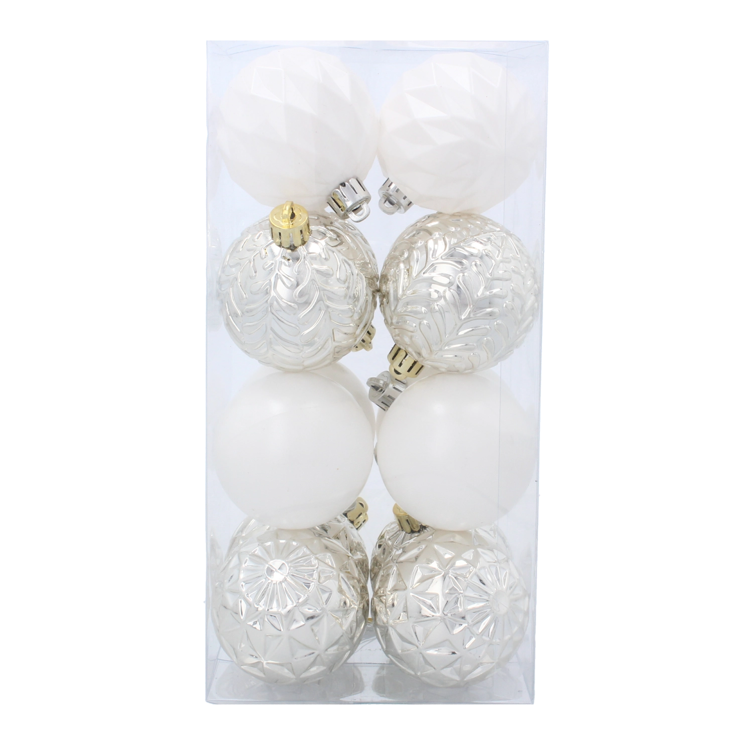Elegantní sada 16 bílých vánočních baněk o průměru 6 cm dodá vašemu stromečku jemný třpyt a nadčasový styl. Jsou vyrobeny z nerozbitného plastu, takže jsou bezpečné pro děti i domácí mazlíčky. Díky lehkému provedení se snadno zavěšují a jejich čistě bílá barva se skvěle kombinuje s tradičními i moderními dekoracemi.