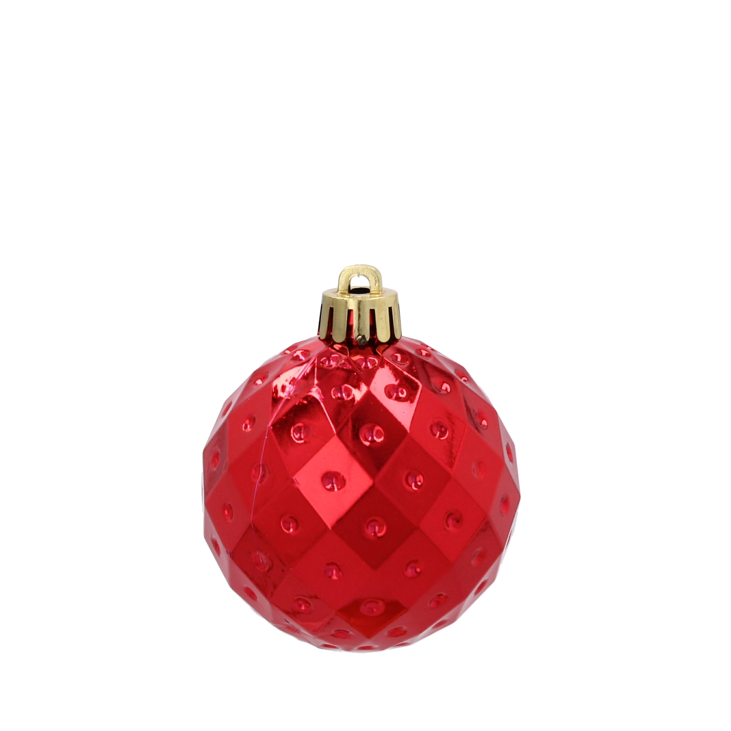 Fazetová, tečkovaná textura v červené, zlaté a stříbrné barvě propůjčuje stromku moderní vzhled a krásné odlesky.