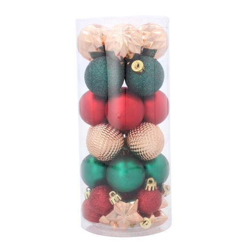 Tato univerzální sada obsahuje mix povrchů a vzorů, díky nimž snadno sladíte svou výzdobu do jednotného, elegantního stylu. Ozdoby jsou lehké, odolné a bezpečné i v domácnostech s dětmi či domácími mazlíčky. Díky praktickým šňůrkám je zavěšení otázkou chvilky.