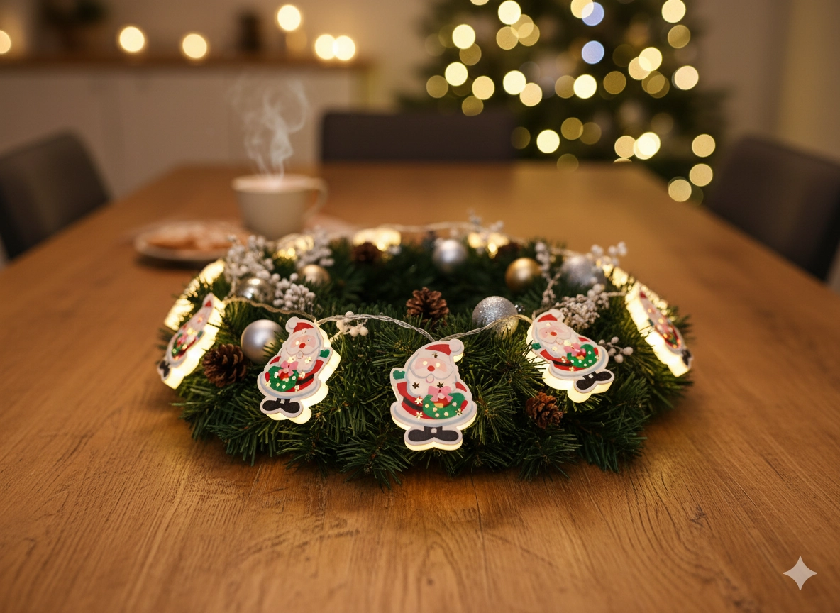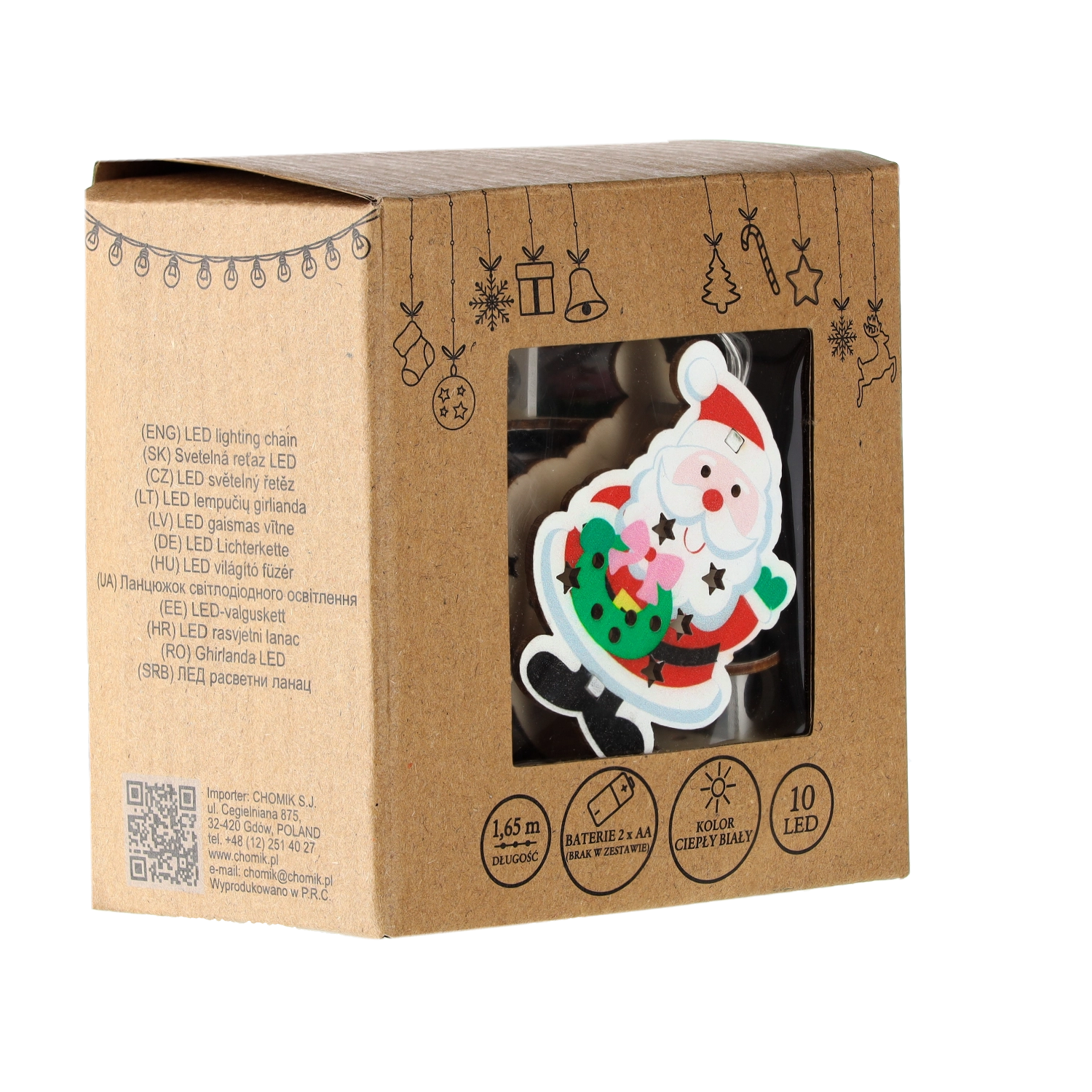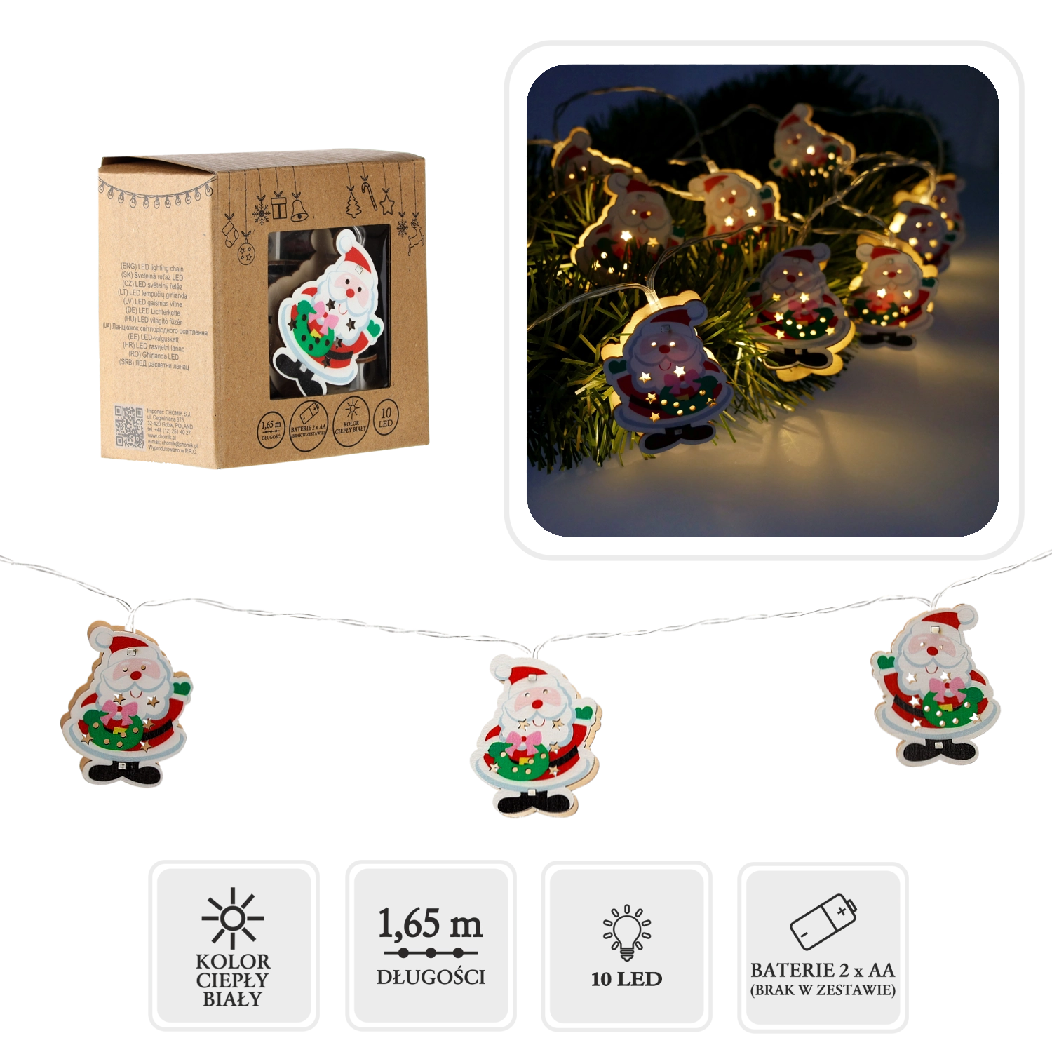 Stylový dřevěný světelný řetěz se SANTOU je ideální pro vánoční výzdobu interiéru. Díky teplému bílému světlu působí příjemně a hřejivě, zatímco lehké provedení a tenký vodič umožňují snadné naaranžování na stromek, věnec, zábradlí či police.