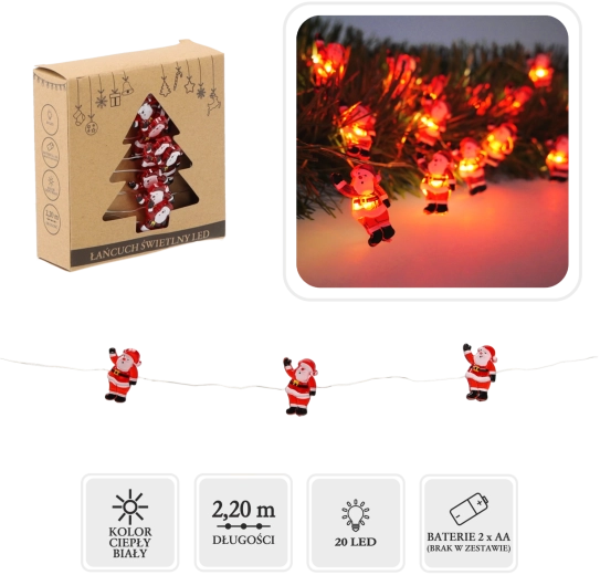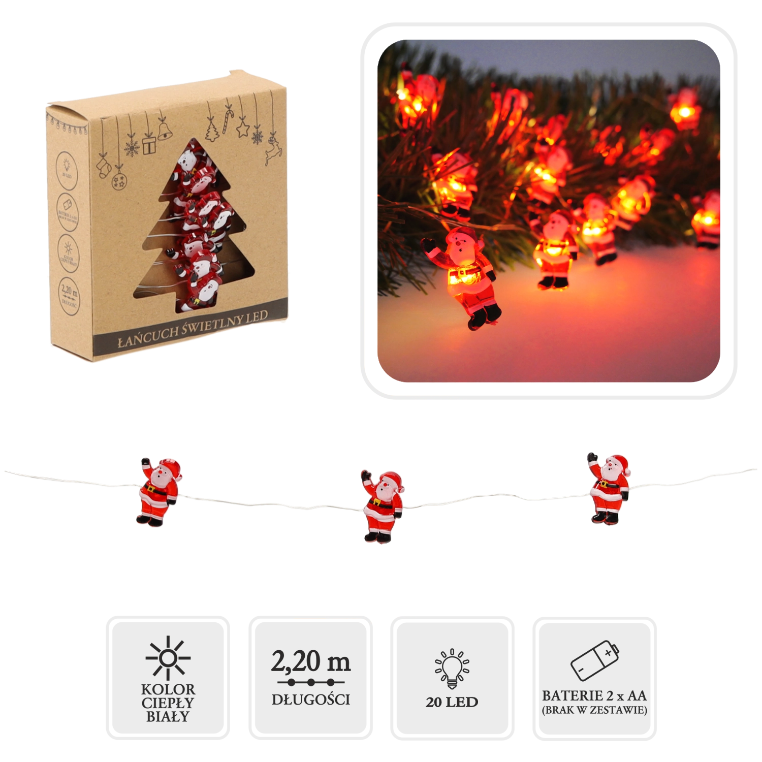 Každé světýlko zdobí malý Santa, který vytváří hravý a přitom elegantní vánoční akcent do každé místnosti.