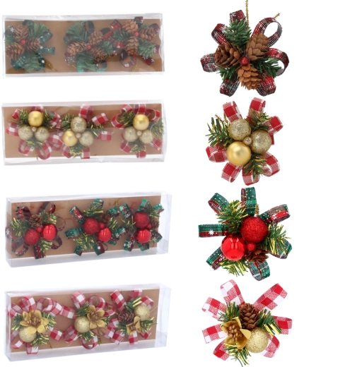 Ozdoby jsou lehké a odolné, vyrobené z kvalitního plastu s dlouhou životností. Drátěné očko usnadňuje zavěšení na vánoční stromek, věnce nebo dárkové balíčky. Mix vzorů a barev vám pomůže vytvořit vizuálně bohatou a stylovou výzdobu, která zaujme na první pohled.