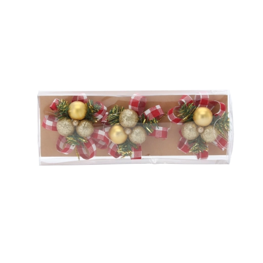 Tato elegantní sada tří ozdob spojuje tradiční přírodní motivy s moderním designem. Díky pečlivému zpracování a kontrastu třpytivých i matných povrchů dodají dekorace vašemu interiéru výrazný, ale vkusný sváteční nádech. Každý kus je navržen tak, aby vynikl samostatně i v sadě.