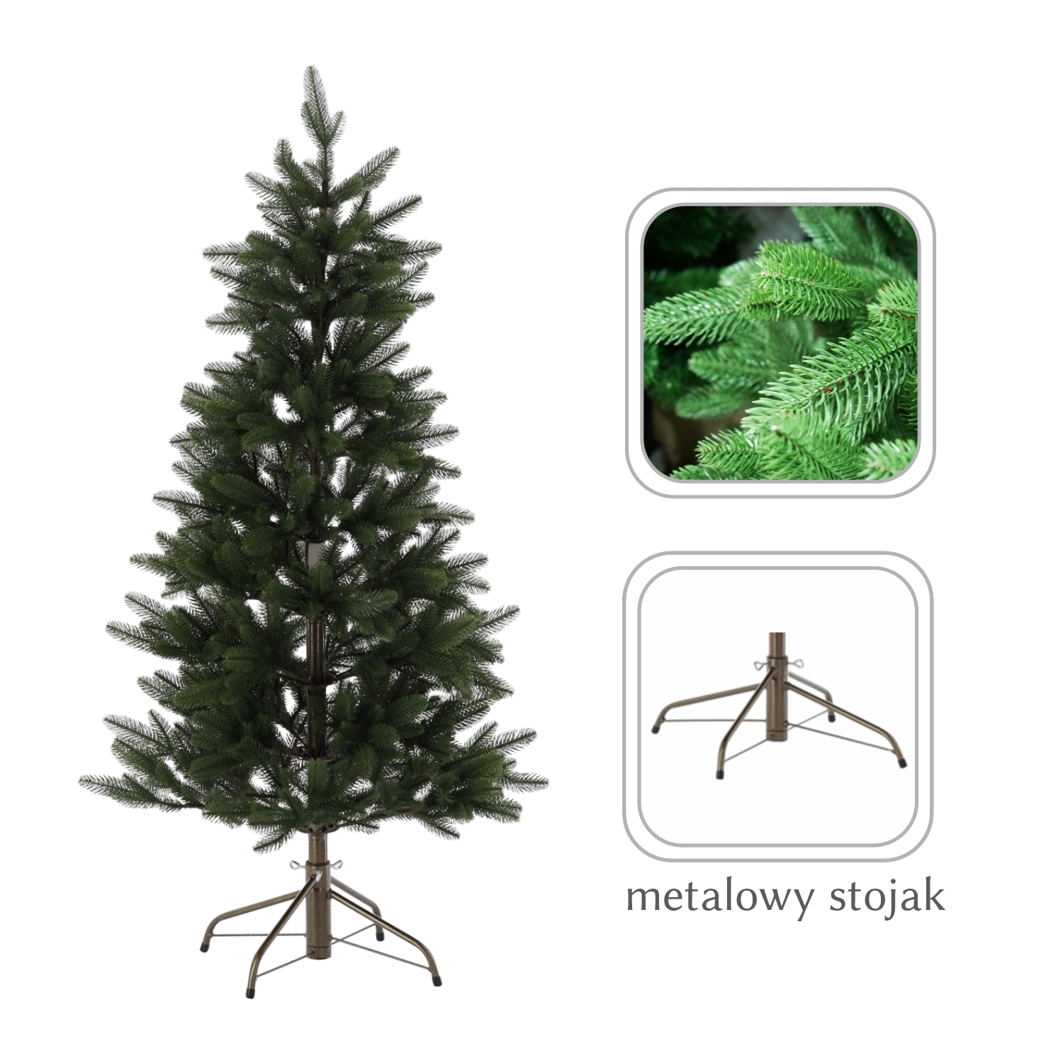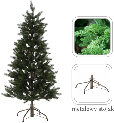 Robustní kovový stojan zajišťuje výbornou stabilitu a bezpečnost. Stromek lze během chvilky složit i rozložit, takže se snadno skladuje a je připraven na další sezóny. Díky odolné konstrukci je ideální do rodin s dětmi či domácími mazlíčky – bez nepořádku a bez údržby typické pro živé stromy.