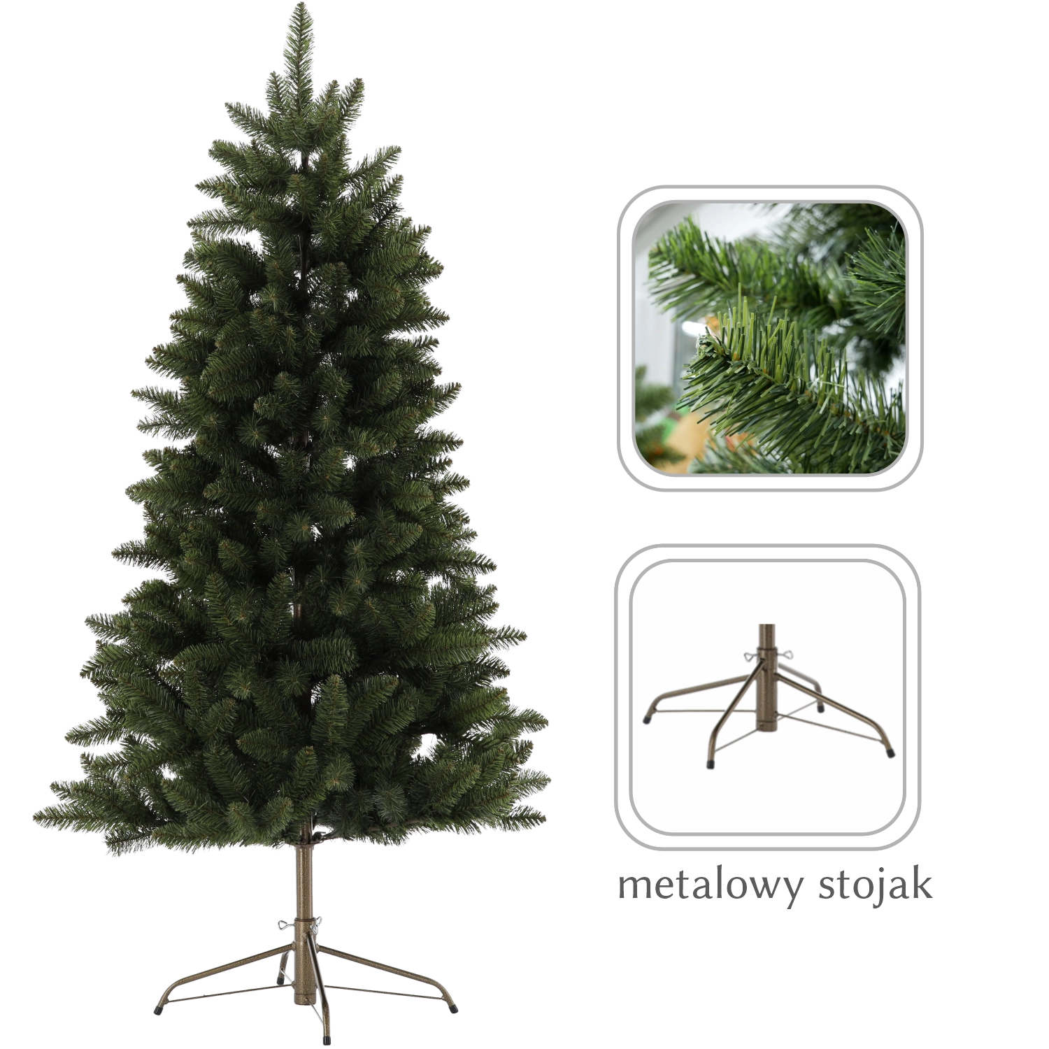 Užijte si kouzlo Vánoc s elegantním umělým smrkem o výšce 180 cm, který věrně napodobuje vzhled živého stromku. Díky kvalitnímu PVC materiálu se vyznačuje hustým jehličím a sytě zeleným odstínem pro přirozený a estetický dojem.