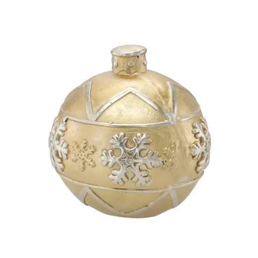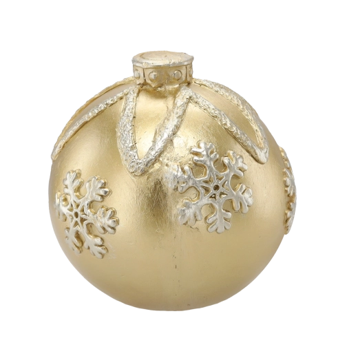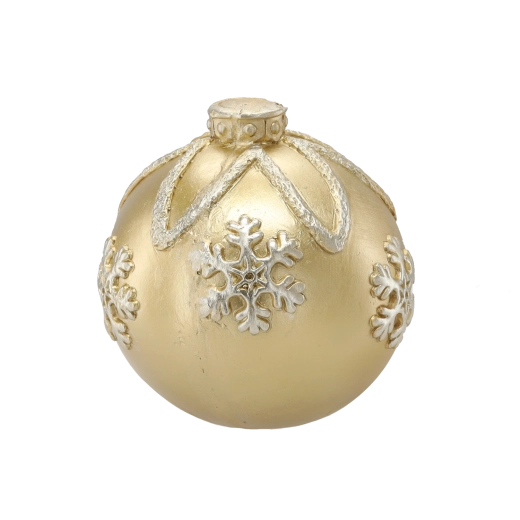 Elegantní zlatá vánoční koule o průměru 21,5 cm dodá vašemu domovu sváteční atmosféru. Lesklý povrch a plastické vzory sněhových vloček z ní dělají výraznou dekoraci pro větší vánoční stromky i samostatná aranžmá. Vyrobena z kvalitního, odolného materiálu pro dlouhou životnost.