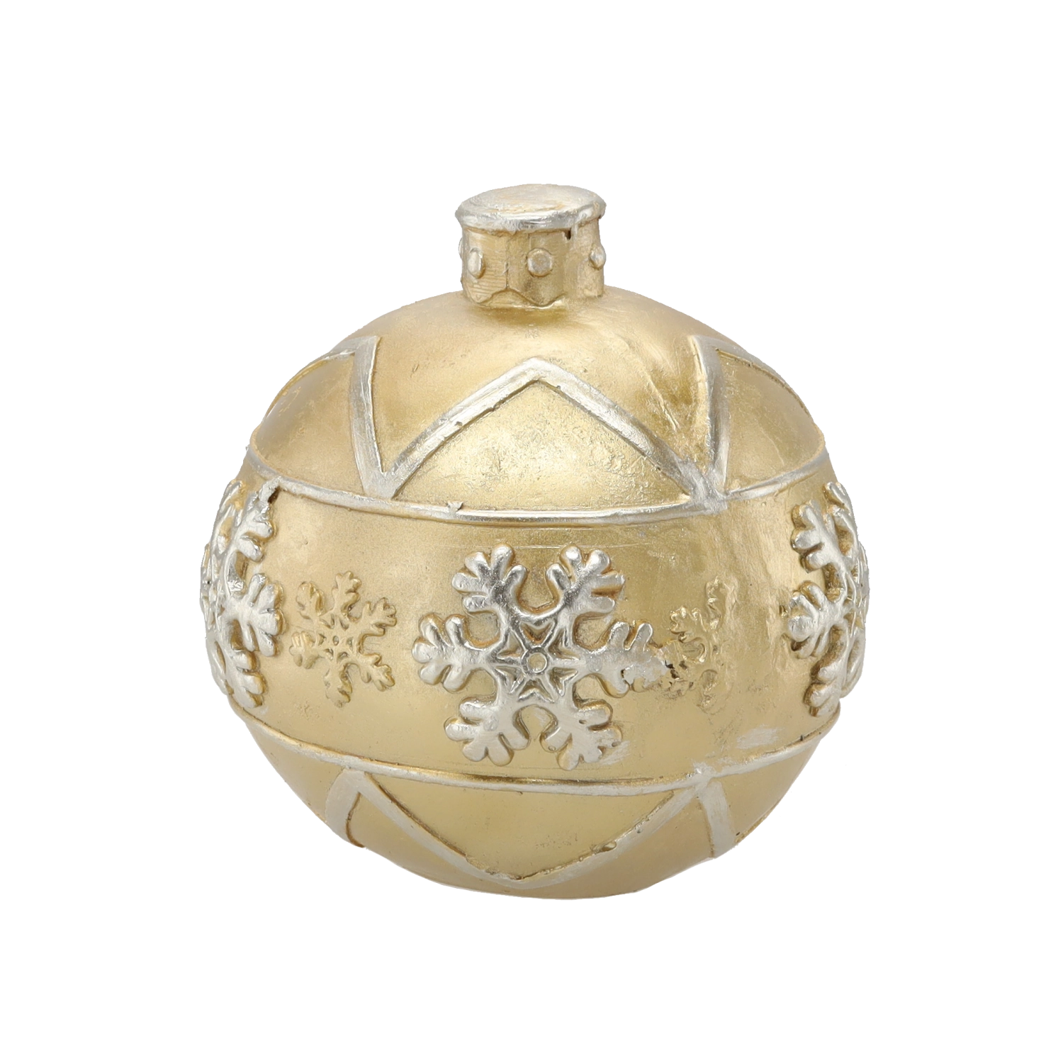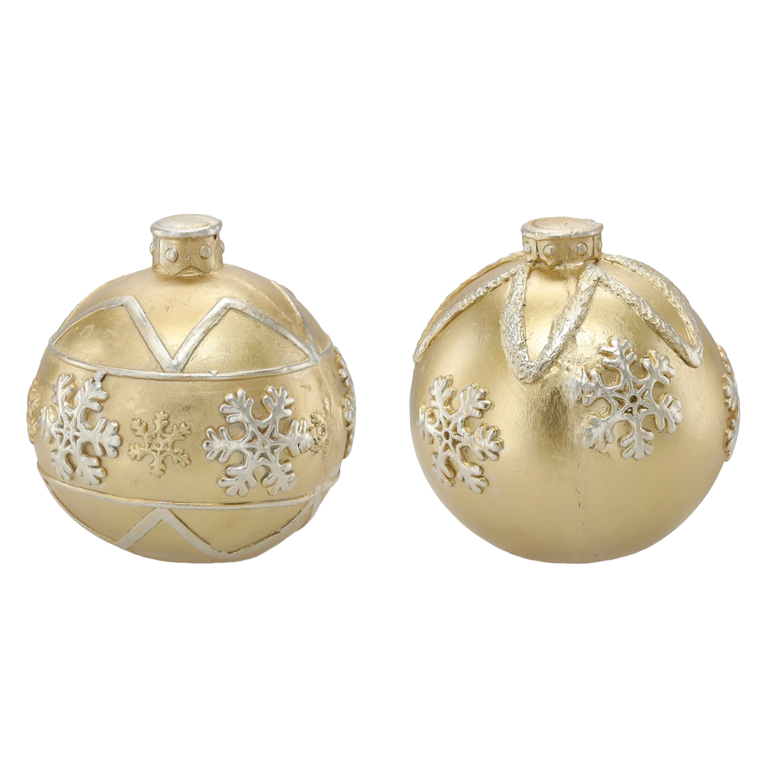 Metalický povrch se zvýrazněnými sněhovými vločkami a geometrickými pásy dodá výzdobě hloubku a elegantní odlesky.