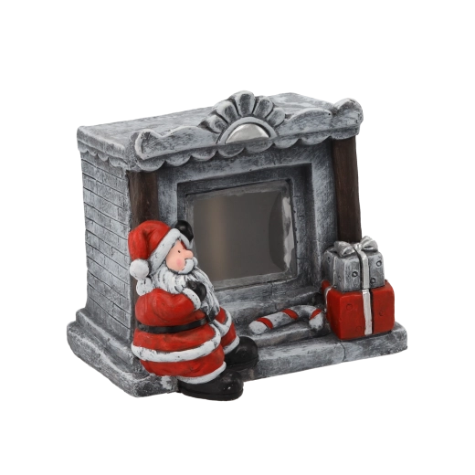 Vytvořte doma kouzelnou atmosféru s touto detailně zpracovanou vánoční dekorací – Santa u kamenného krbu s teplým LED osvětlením, které připomíná žhnoucí oheň. Skvělé jako stolní ozdoba nebo rámček na fotografii pro vaše sváteční vzpomínky. Baterie AAA nejsou součástí balení.