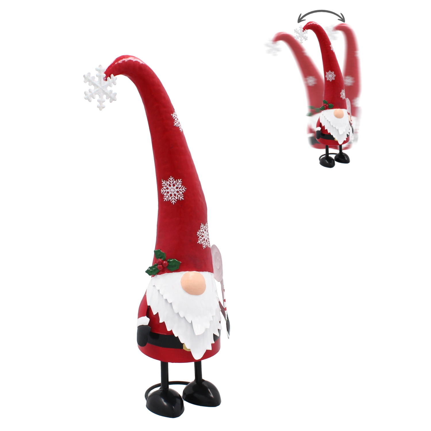 Elegantní kovový vánoční skřítek s dlouhou čepicí rozzáří váš domov a vnese do něj kouzlo Vánoc. Díky kvalitnímu zpracování, stabilní kovové konstrukci a stylové kombinaci červené a stříbrné se stane nepřehlédnutelnou sváteční dekorací na poličku, parapet či stůl.