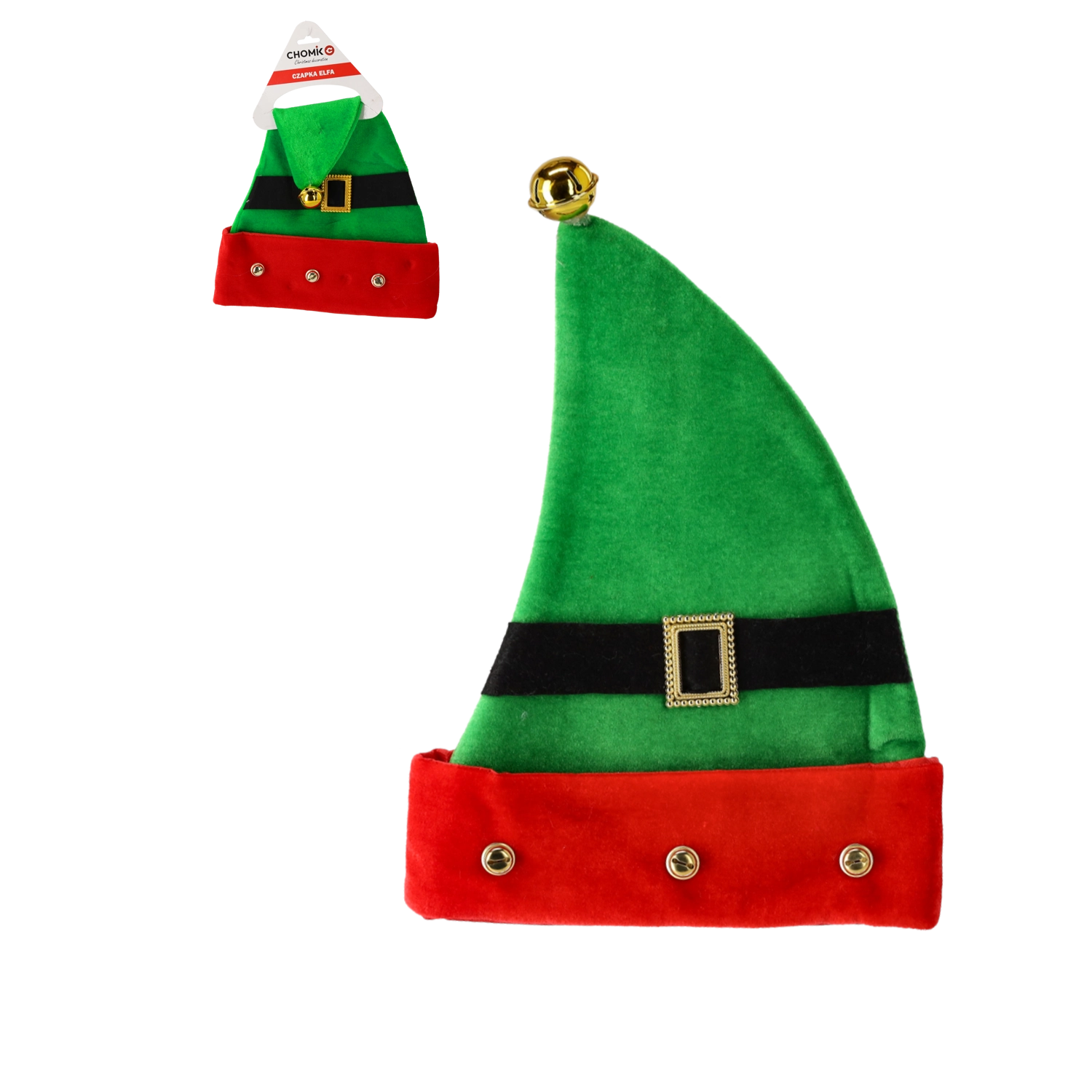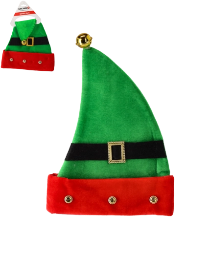 Tato vánoční čepice elfa je ideálním doplňkem pro firemní večírky, školní akce i domácí slavnosti. Měkká tkanina příjemně sedí a díky lehké konstrukci se pohodlně nosí celé hodiny. Dekorativní prvky, jako je červený lem, černý "pásek" s přezkou a zvonečky, dodávají hravý a autentický vzhled.