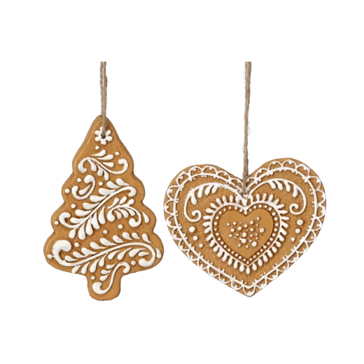 Ozdoby ve tvaru perníčků kombinují vzhled ruční práce s praktickými vlastnostmi moderních materiálů. Díky nízké hmotnosti se snadno věší a krásně vyniknou na větvích stromku, věncích i ve svátečních dekoracích po celém interiéru.