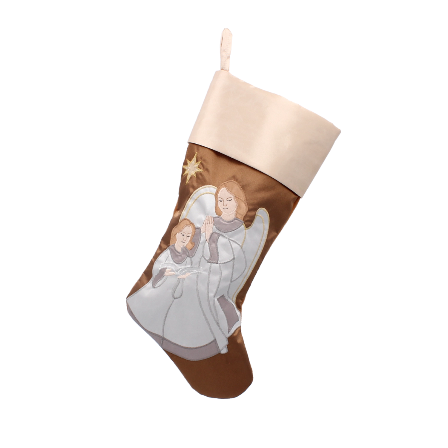 Vytvořte si doma tu pravou sváteční atmosféru s elegantní vánoční punčochou zdobenou anděly. Kvalitní textilní zpracování, pečlivé aplikace a měkký materiál zajišťují dlouhou životnost i krásný vzhled po mnoho sezón. Praktické poutko umožňuje snadné zavěšení na krb, zábradlí či háček.