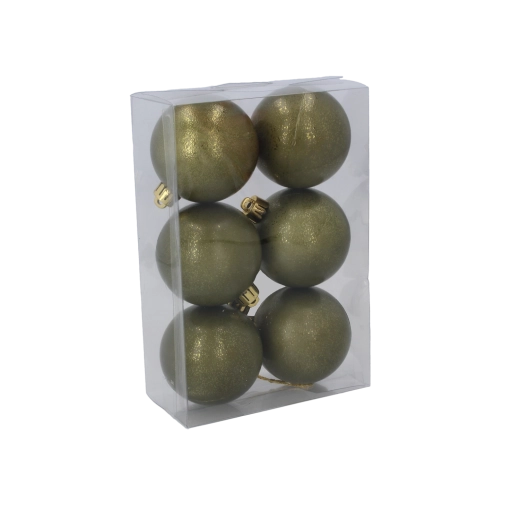 Elegantní sada vánočních ozdob v harmonických tónech olivové, měděné a grafitové okamžitě povýší každou výzdobu. Koule o průměru 6 cm jsou lehké, odolné a bezpečné, takže se skvěle hodí na stromek, věnec i do svátečních aranžmá na stůl.