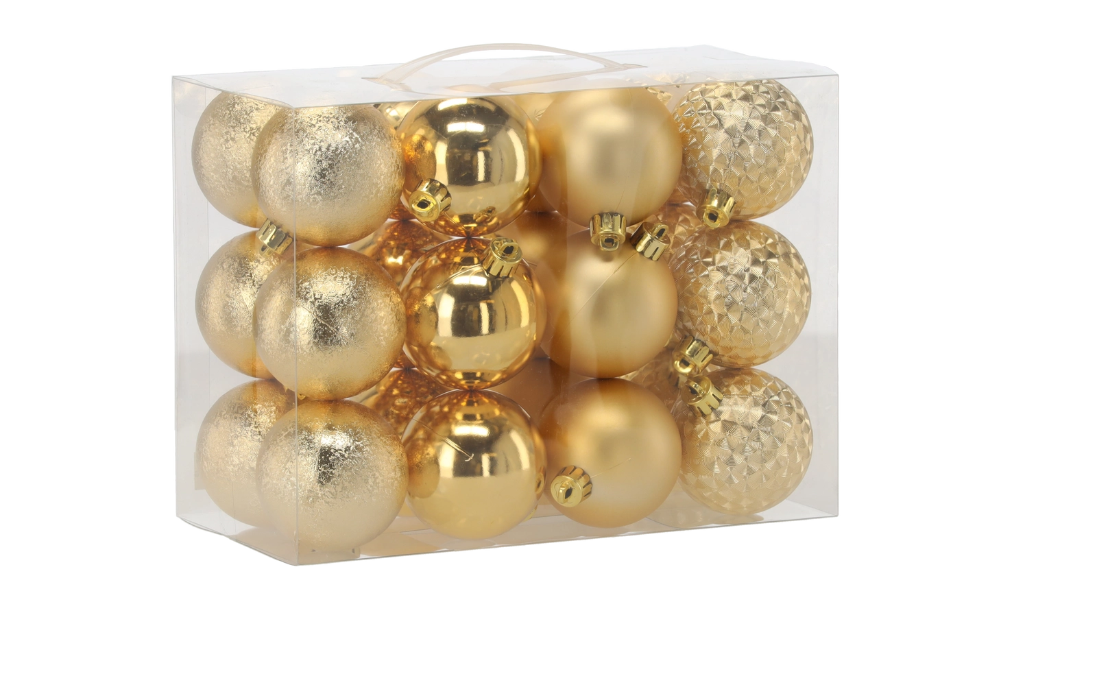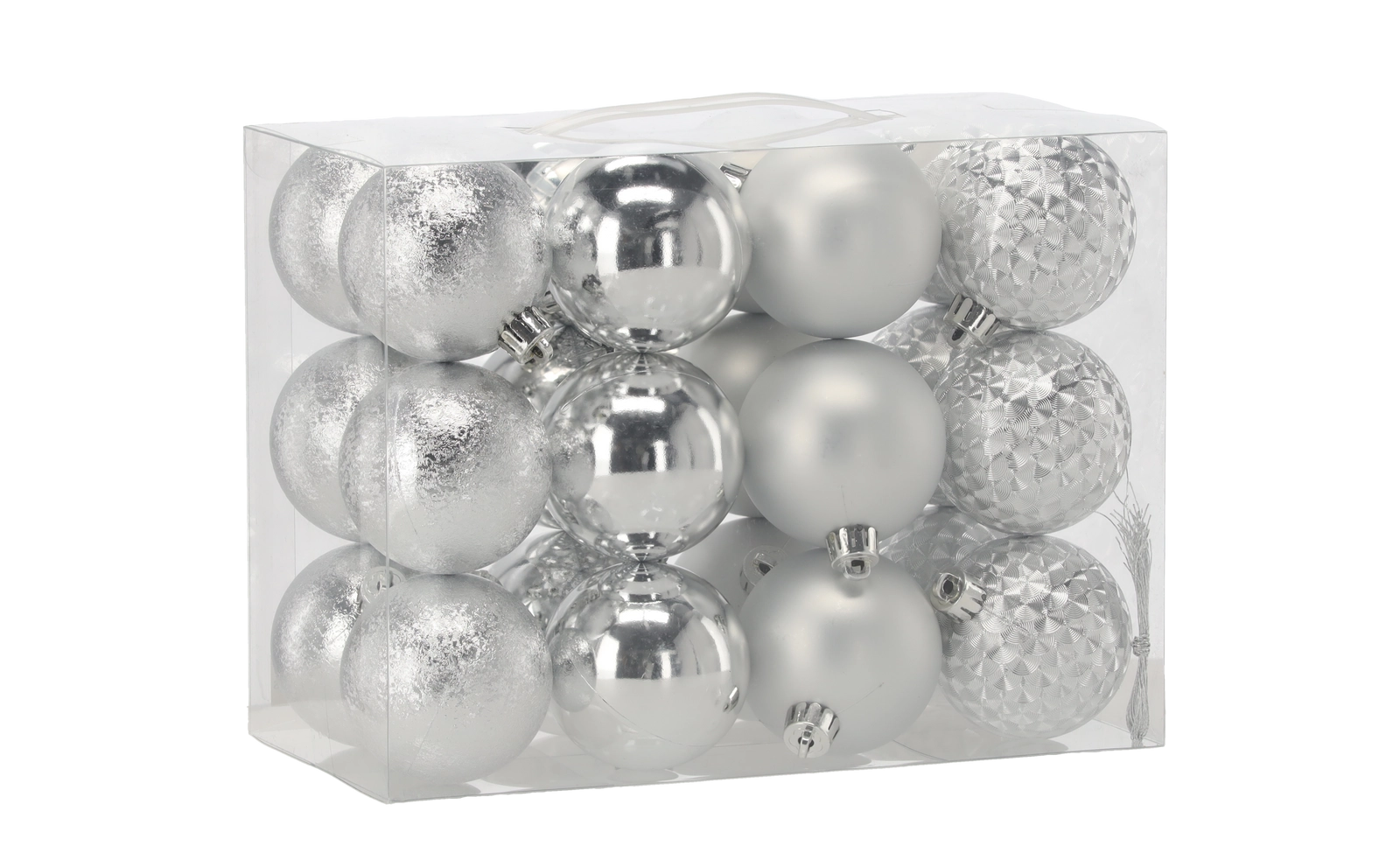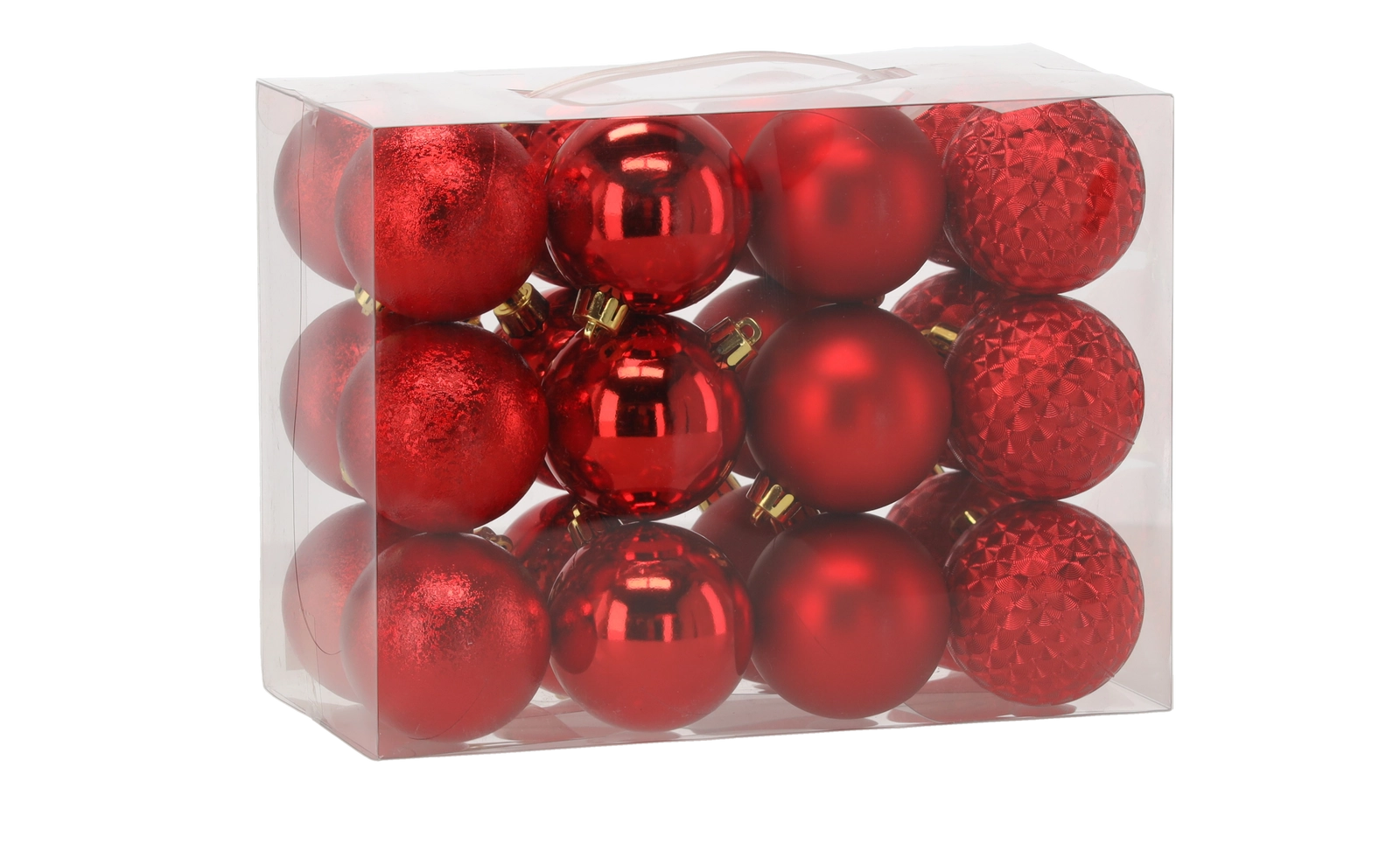 Vytvořte dokonalou sváteční atmosféru s univerzální sadou vánočních koulí, které kombinují tradiční barvy s různými povrchy a vzory – lesk, mat, třpyt a strukturované provedení. Každá ozdoba má kovový cap s očkem a jemnou šňůrku pro rychlé zavěšení.