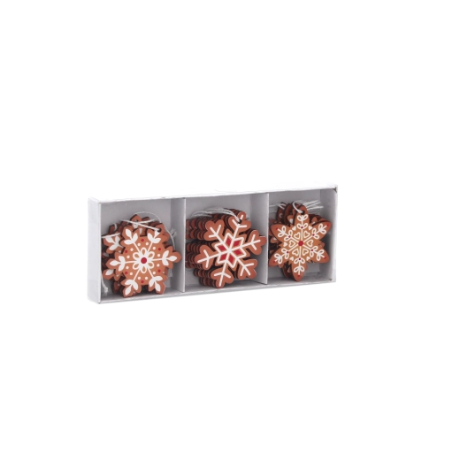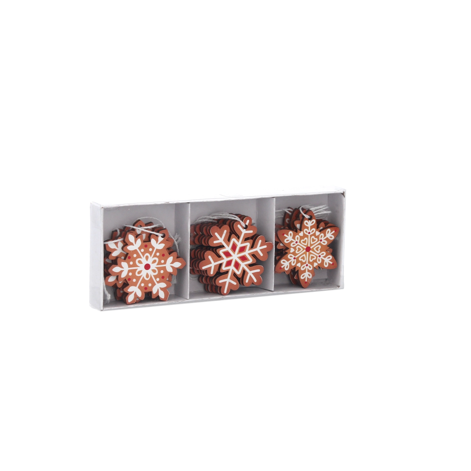 Sada nabízí mix 3 jedinečných sněhových vloček v harmonických hnědých tónech s bílými a červenými detaily. Snadno tak vytvoříte vyváženou a estetickou vánoční kompozici.