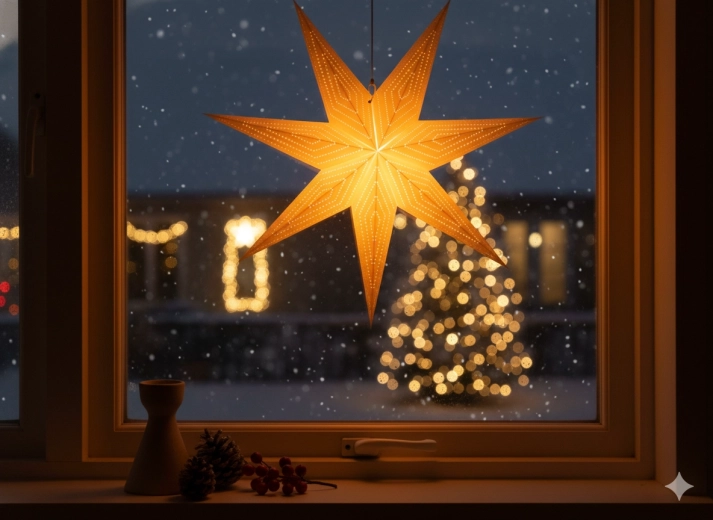 Lehká konstrukce umožňuje snadné zavěšení do okna, na stěnu či nad jídelní stůl. Po skončení svátků ji jednoduše složíte a uložíte pro další rok. Udržitelný materiál s certifikací FSC podtrhuje ekologicky šetrnou volbu bez kompromisů v estetice.