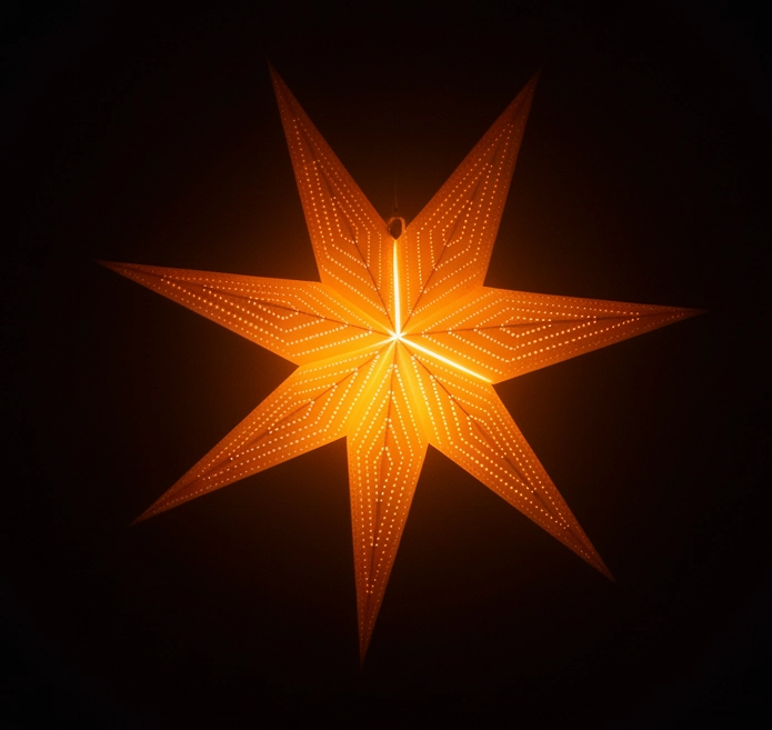 Tato zlatá papírová hvězda vyniká elegantním sedmicípým designem a jemnou perforací, díky níž promění světlo v okouzlující stínohru. Skvěle se hodí do klasických i moderních interiérů, kde se stane výrazným dekorativním prvkem během Vánoc i zimní sezóny.