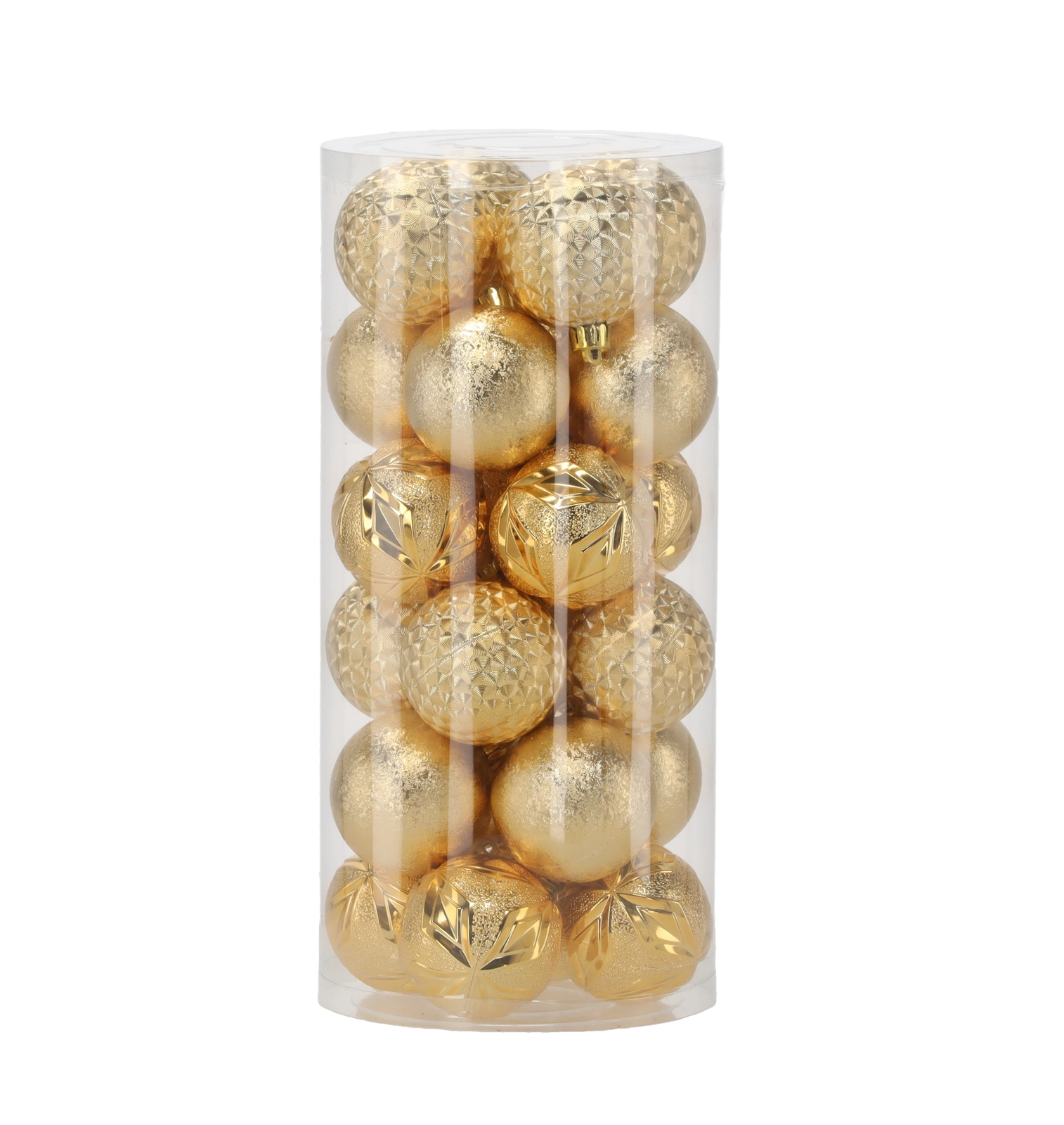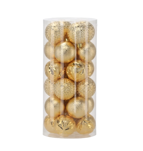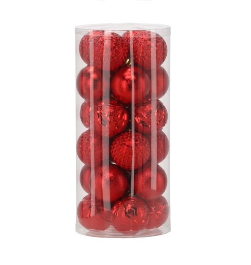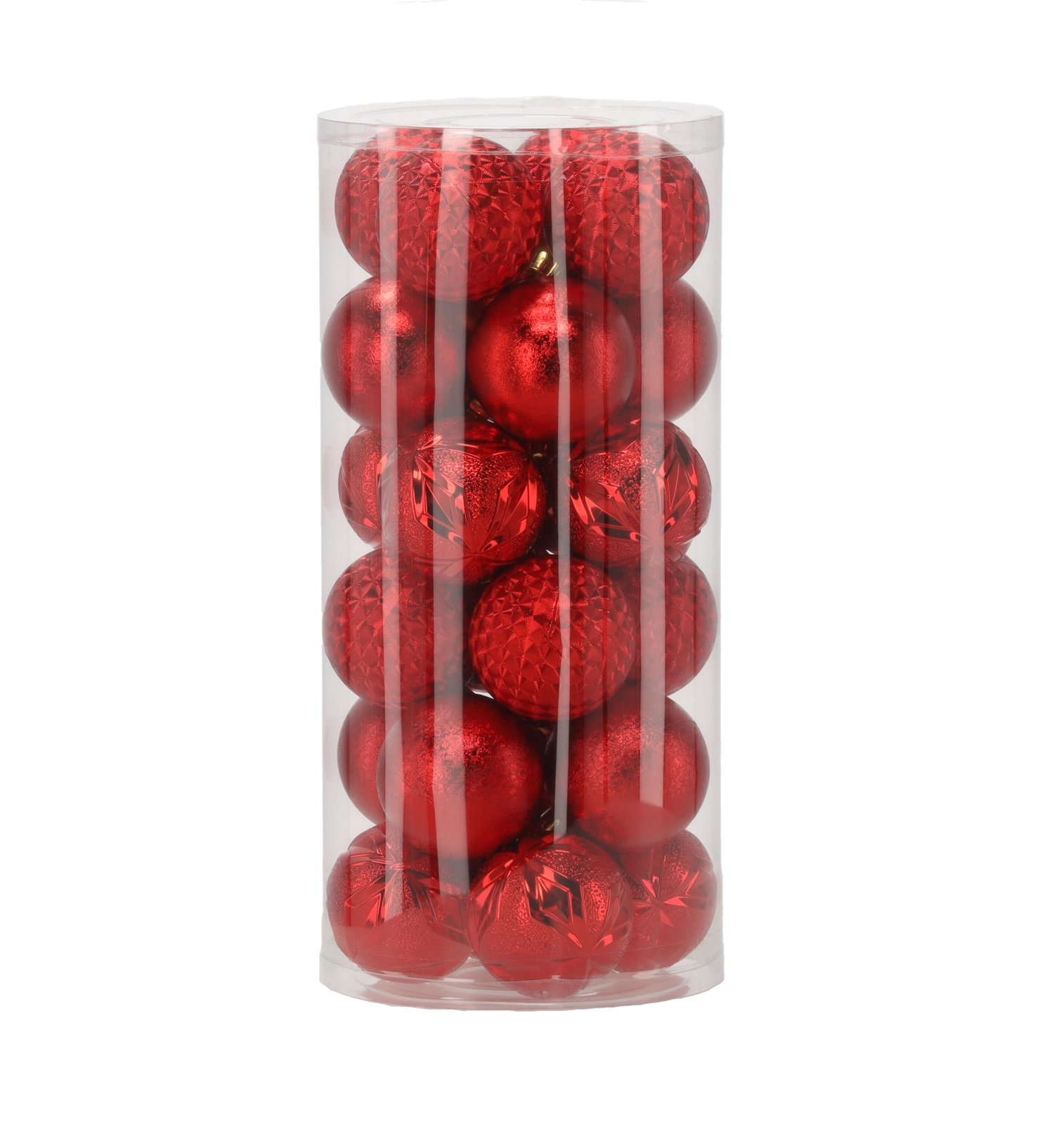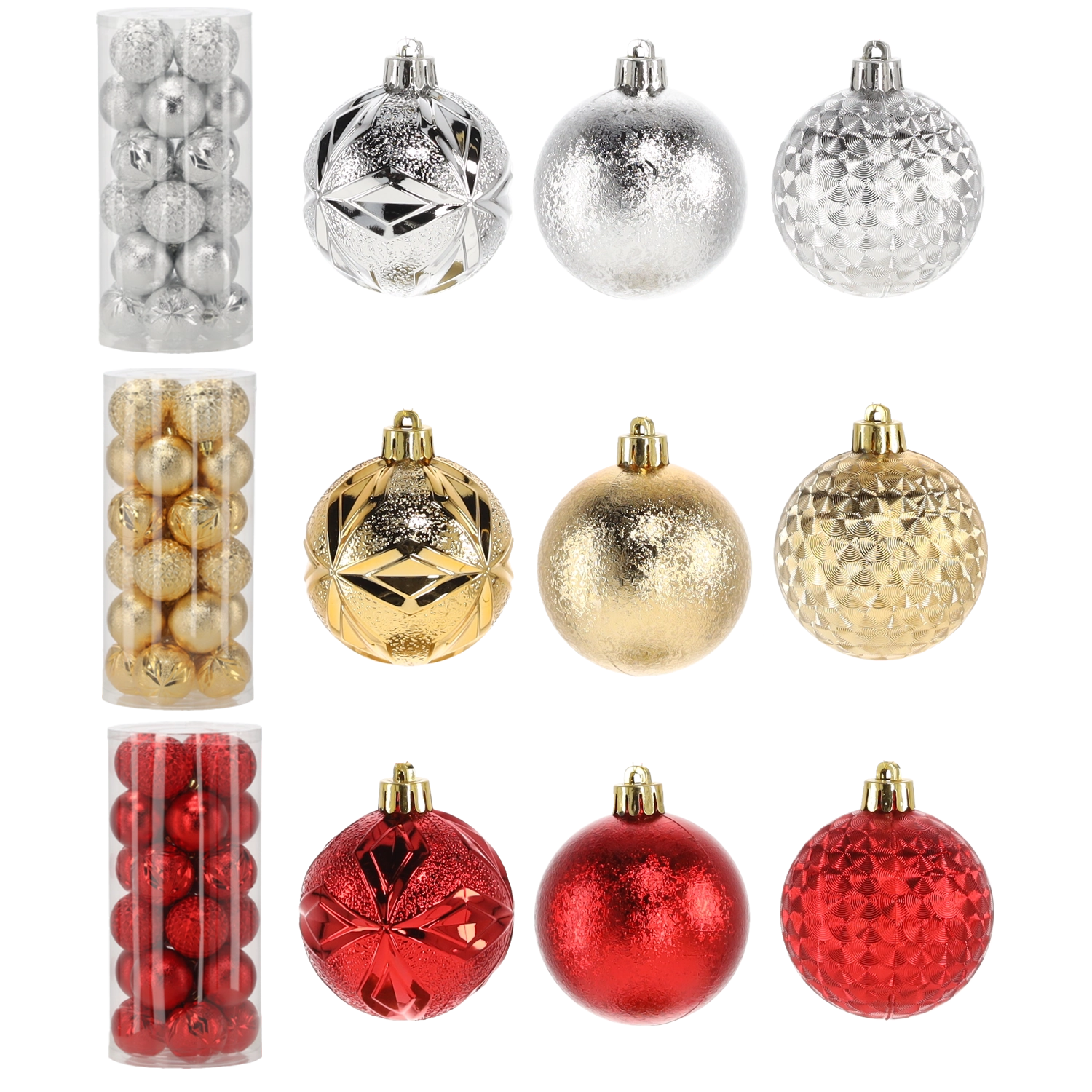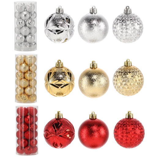Tato elegantní sada obsahuje 24 kusů vánočních koulí o průměru 6 cm v nadčasové kombinaci červené, zlaté a stříbrné. Různé povrchové úpravy jako lesk, strukturovaný a třpyt dodají vašemu stromku hloubku i jiskru a pomohou vytvořit harmonickou výzdobu.