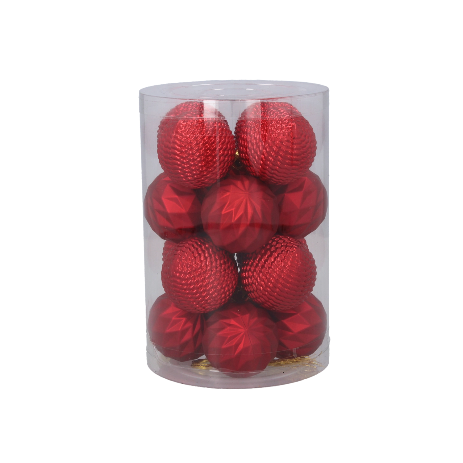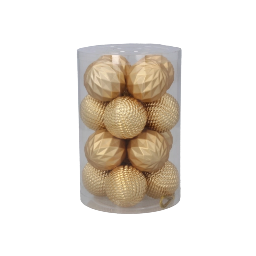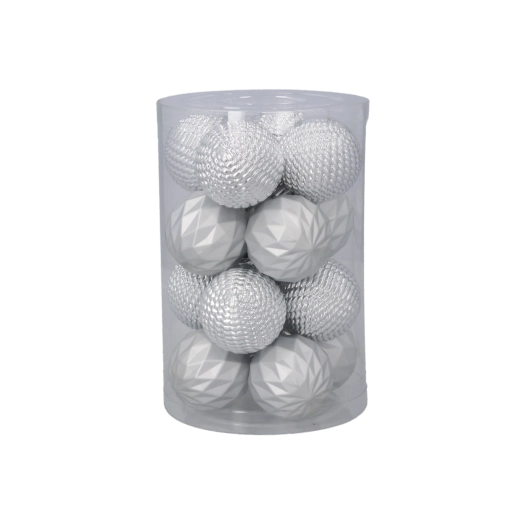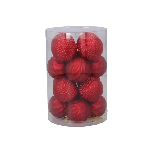 Elegantní sada 16 vánočních ozdob o průměru 4 cm v kombinaci červené, zlaté a stříbrné barvy dodá stromku tradiční a slavnostní vzhled. Ozdoby z netříštivého materiálu jsou bezpečné, lehké a trvanlivé. Praktické balení v průhledné tubě usnadňuje skladování i přenášení.