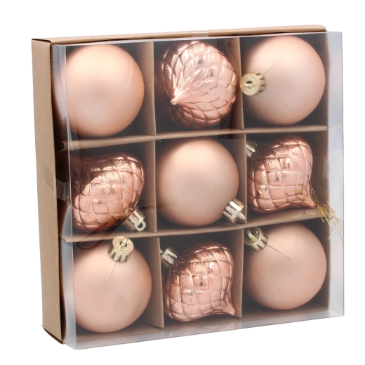 Tato vyvážená kolekce přináší harmonii barev a textur pro klasické i moderní vánoční aranžmá. Lehký materiál usnadňuje zavěšení na větve a díky pevné konstrukci zůstávají ozdoby krásné i při časté manipulaci.
