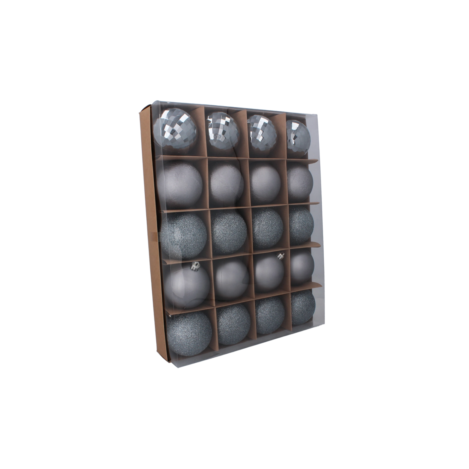 - Vyvážený mix povrchů: mat, žebrování i vysoký lesk pro dynamický vzhled stromku.