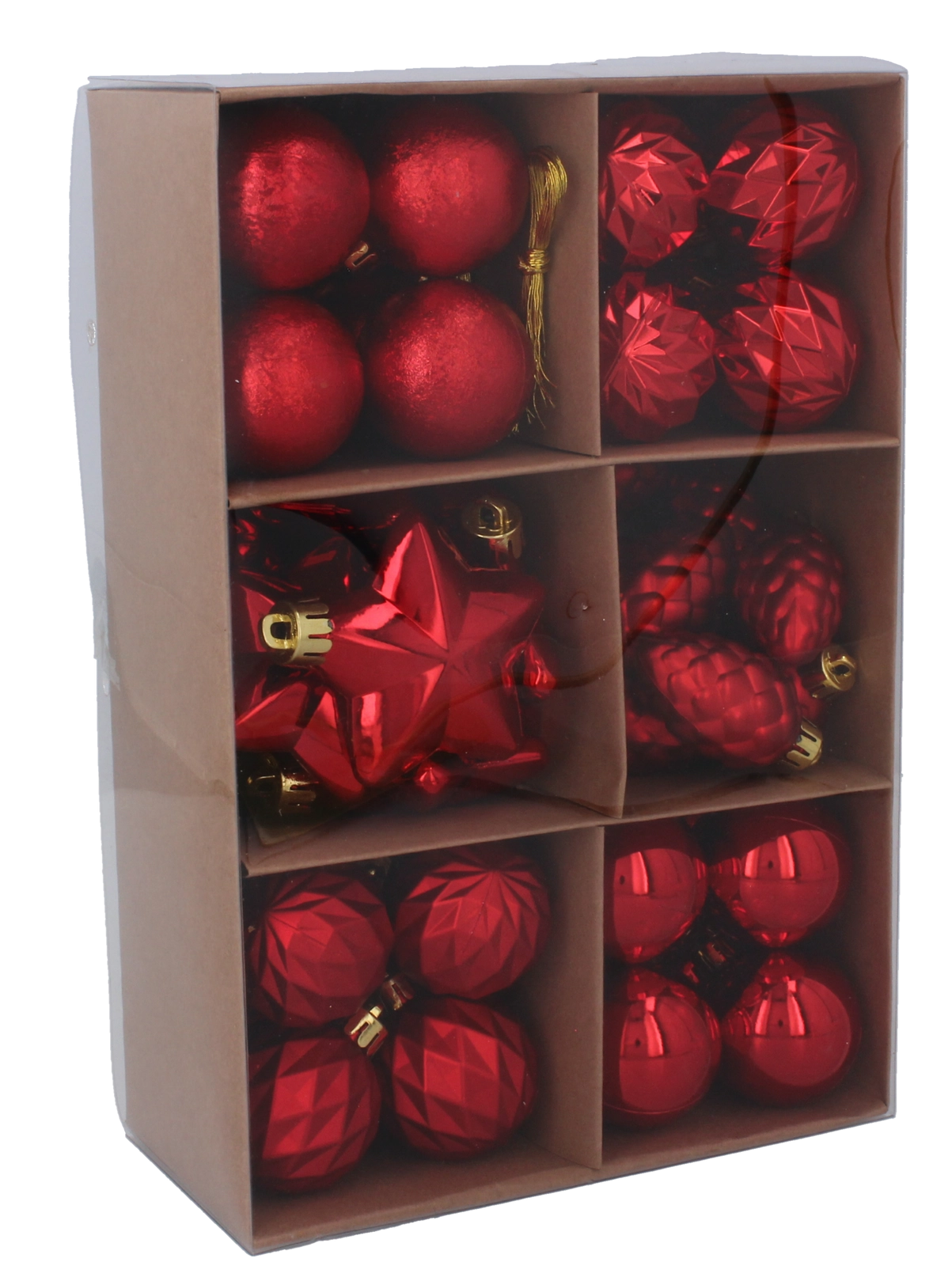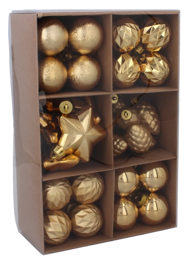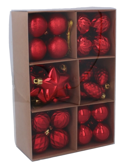 Tato bohatá sada přináší pečlivě vybrané tvary a povrchové úpravy – od hladkých a vysoce lesklých koulí po fázované a strukturované ozdoby, hvězdy či šišky. Díky promyšlenému mixu červené, zlaté a stříbrné snadno sladíte výzdobu s ostatními dekoracemi a vytvoříte nadčasovou sváteční atmosféru.