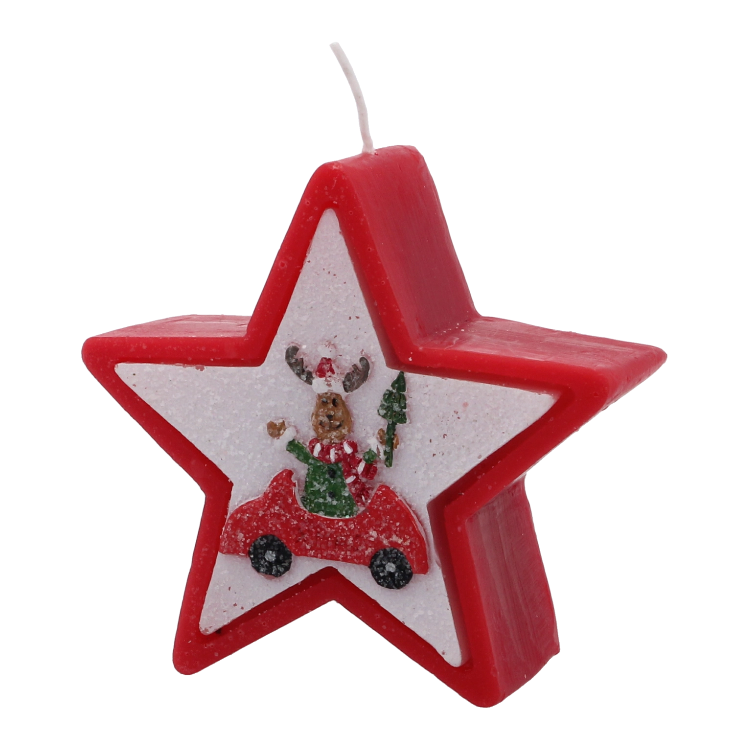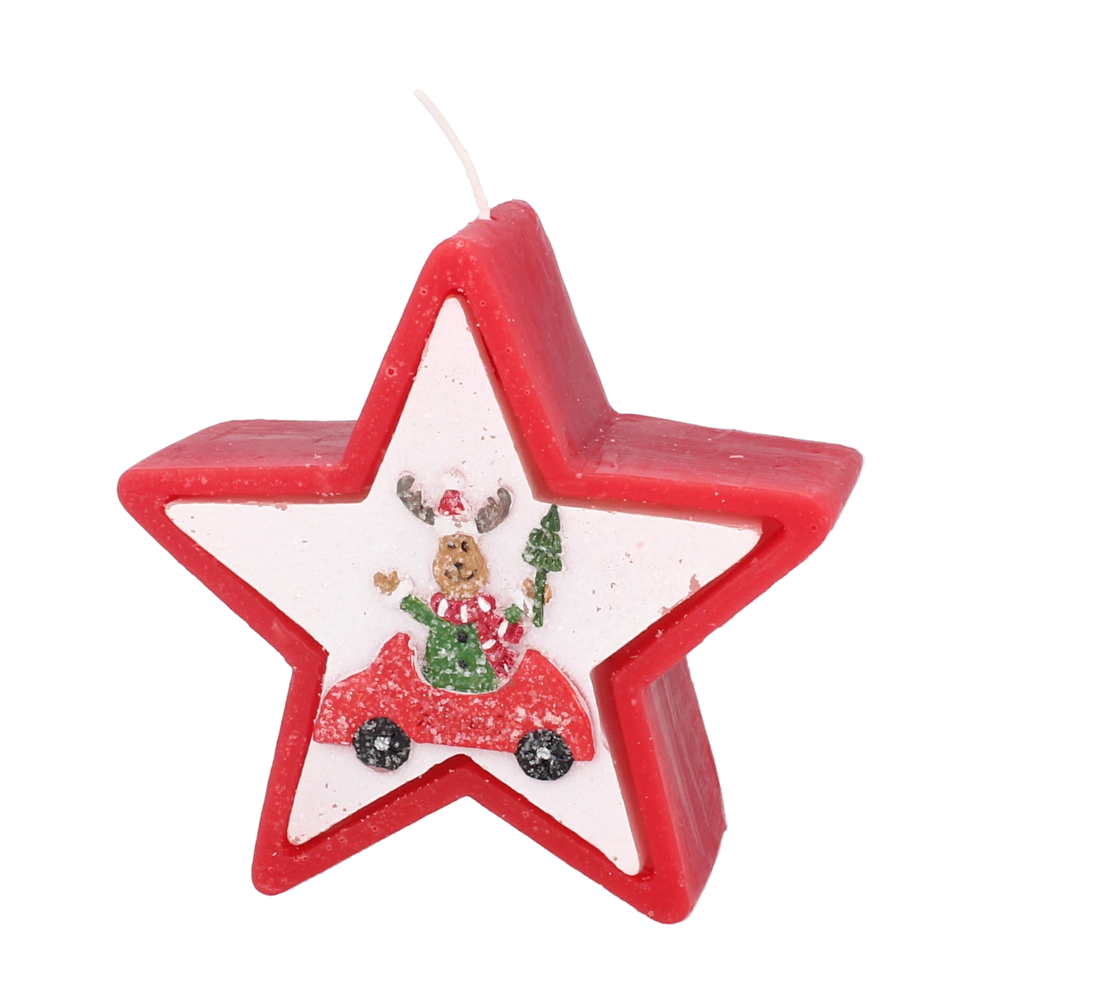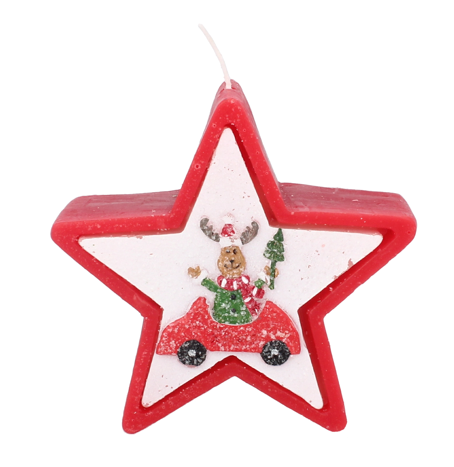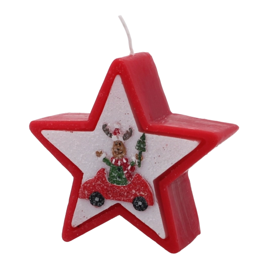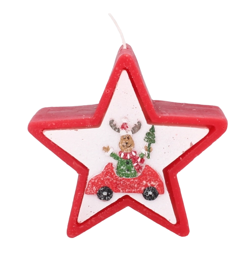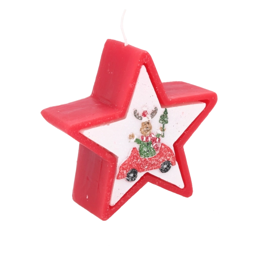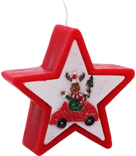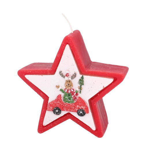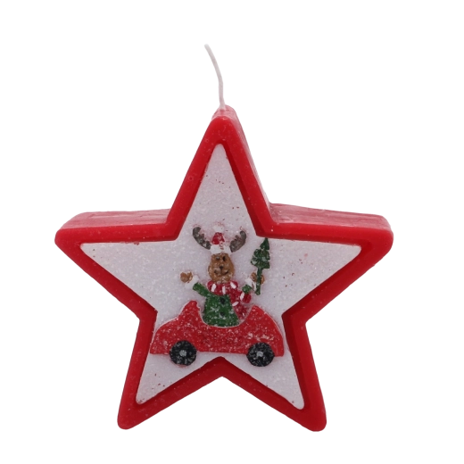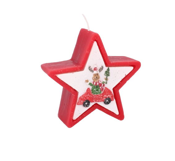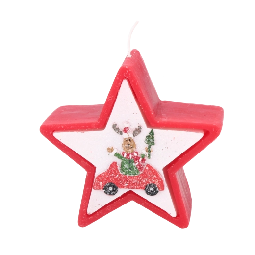 Tato vánoční svíčka v elegantním tvaru hvězdy zaujme veselým motivem soba v autě a okamžitě navodí hřejivou sváteční náladu. Kvalitní vosk zajišťuje stabilní a rovnoměrné hoření, takže si její světlo užijete déle.