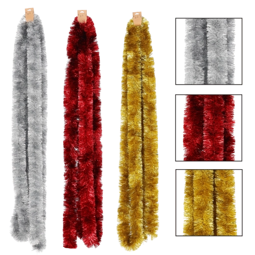 Ozdobte svůj domov stylově – tento 6metrový vánoční řetěz v kombinaci červené, zlaté a stříbrné barvy dodá výzdobě klasický elegantní vzhled. Je vyroben z lehkého plastu pro snadnou manipulaci, jeho lesklý povrch krásně odráží světlo a vytváří kouzelnou sváteční atmosféru.