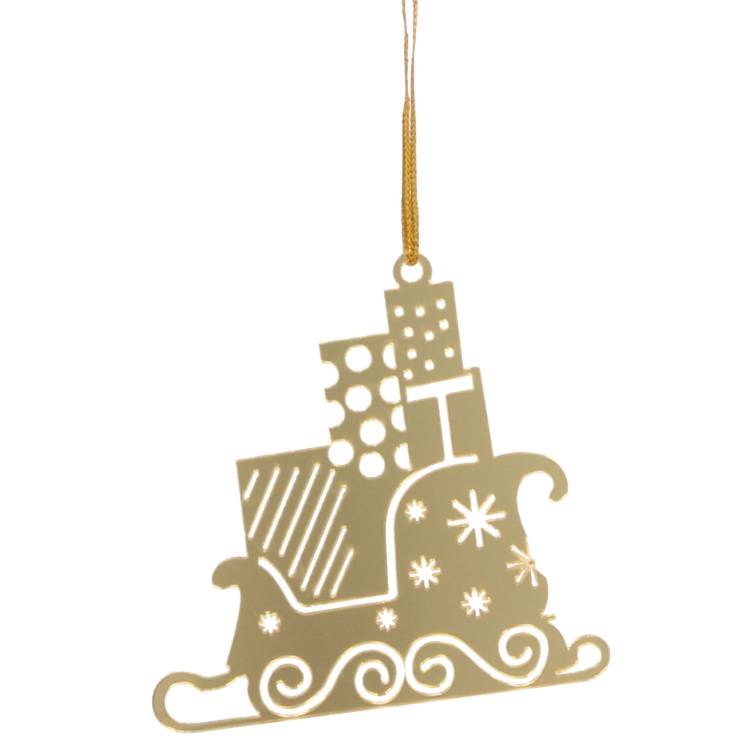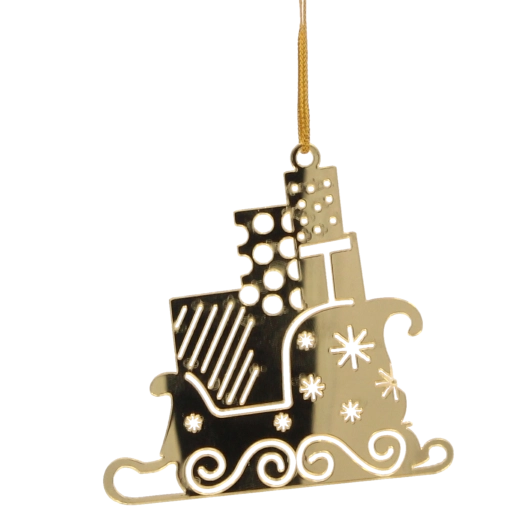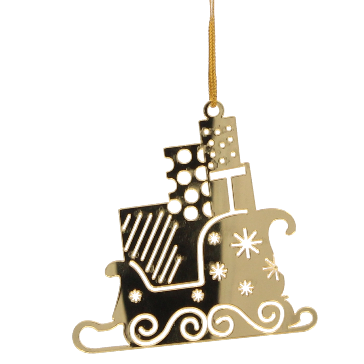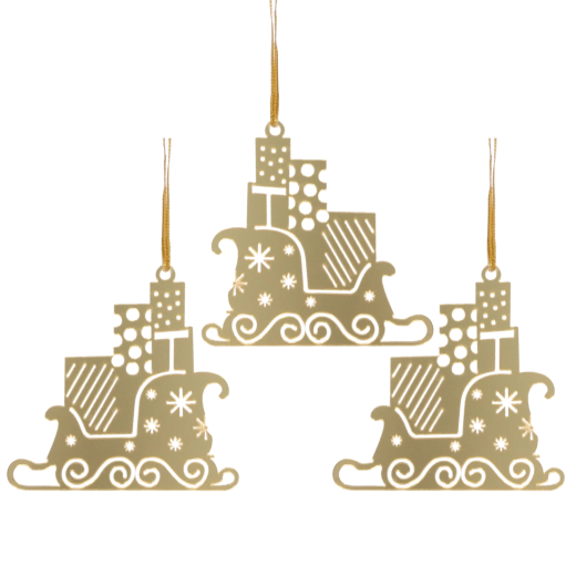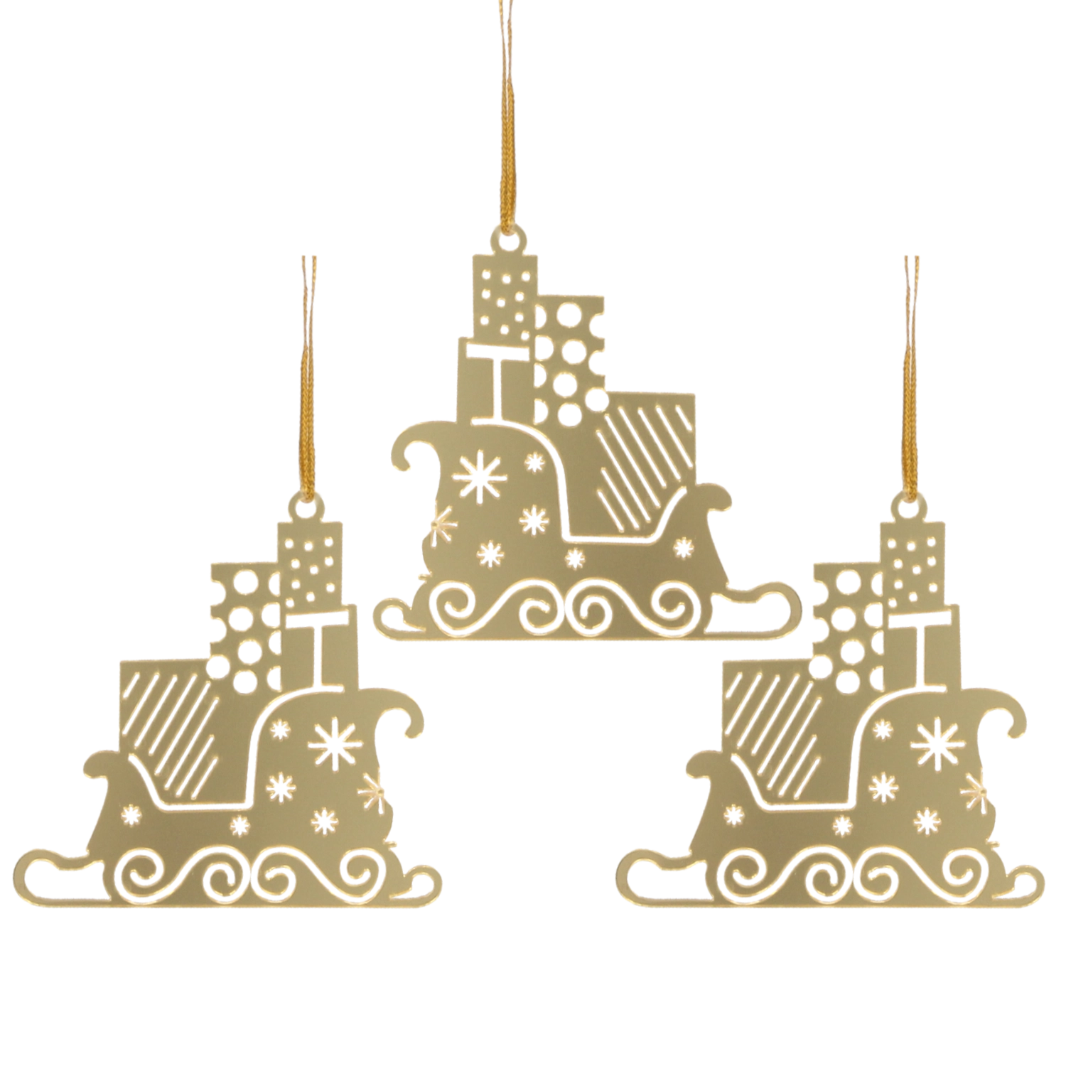 Vneste do svého domova kouzlo Vánoc se sadou tří ozdob ve tvaru saní Santa Clause. Elegantní zlaté dekorace o rozměrech 8 × 8 cm jsou ideální na vánoční stromeček, girlandy i sváteční aranžmá. Díky lehkému a odolnému materiálu se snadno zavěšují a dlouho vydrží. Zlatý lesk, detailní zpracování a nadčasový design dodají vaší výzdobě luxusní a slavnostní atmosféru.