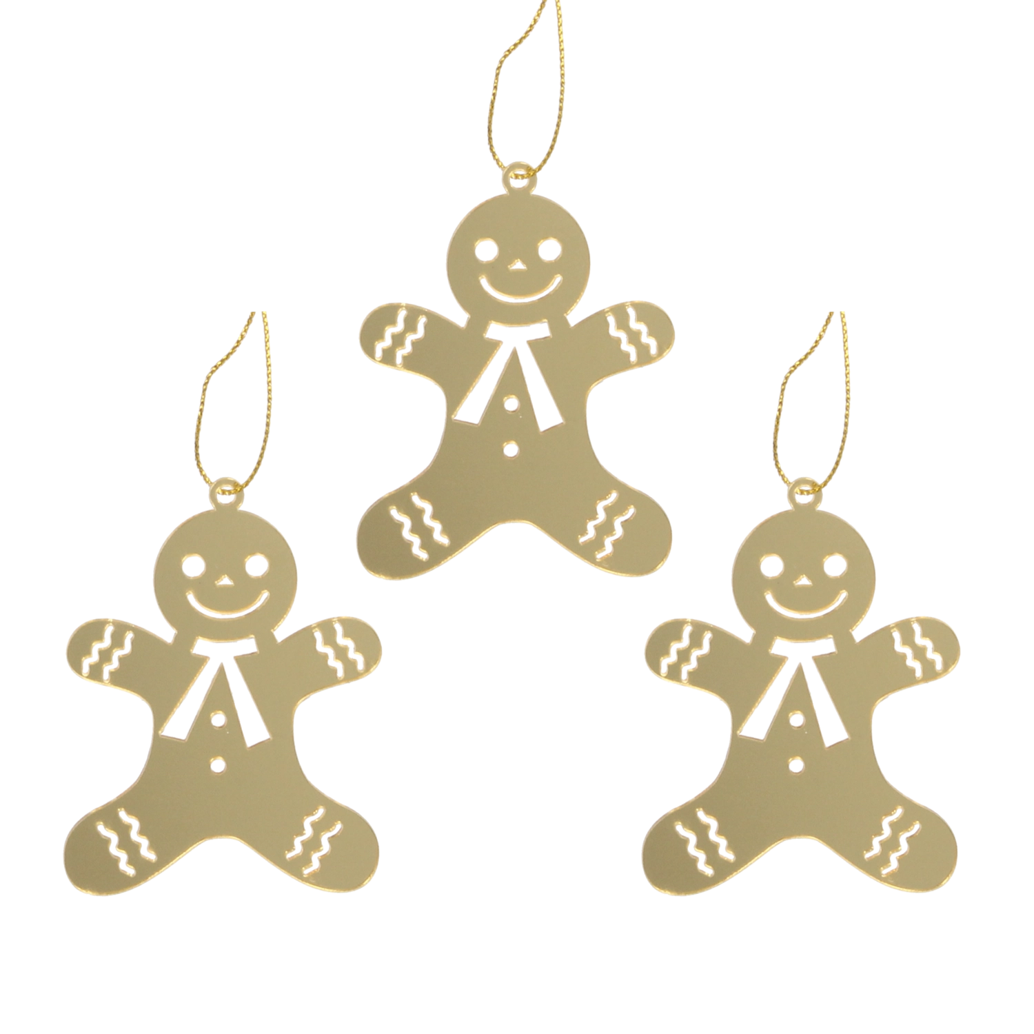 Vneste na svůj stromeček tradiční kouzlo Vánoc se sadou tří kovových ozdob ve tvaru perníčků v elegantní zlaté barvě. Každý kousek je pečlivě zpracovaný s jemnými výřezy a lesklým povrchem pro luxusní vzhled i snadné zavěšení. Rozměry 6 × 8 cm zajišťují, že ozdoby vyniknou, aniž by působily rušivě.