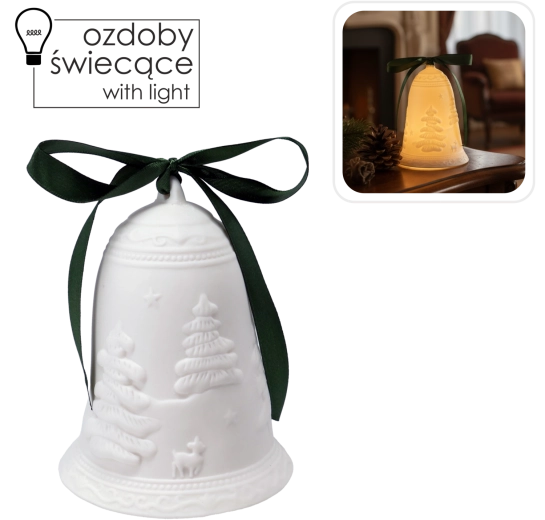 Vytvořte si doma tu pravou sváteční náladu s keramickým zvonkem, který po rozsvícení LED světla jemně prosvítá a dodává interiéru teplý, uklidňující nádech. Díky decentnímu designu s reliéfními vánočními motivy skvěle zapadne do moderních i tradičních aranžmá.