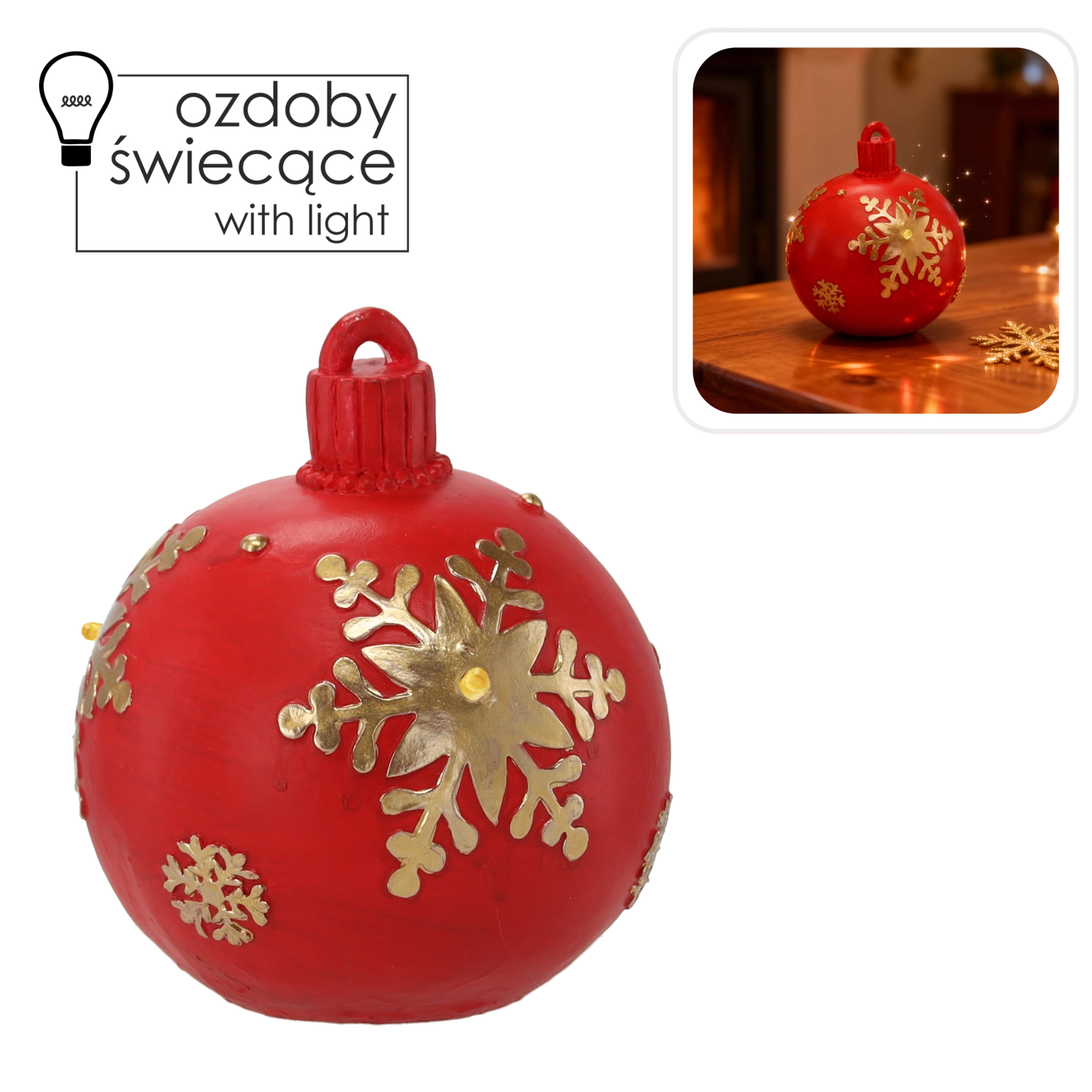 Tato elegantní červená baňka s integrovanými LED diodami vytváří kouzelné, měkké světlo, které zvýrazňuje zlaté detaily a podtrhuje vánoční pohodu. Díky kvalitnímu zpracování a nadčasovému designu se snadno kombinuje s ostatními dekoracemi.