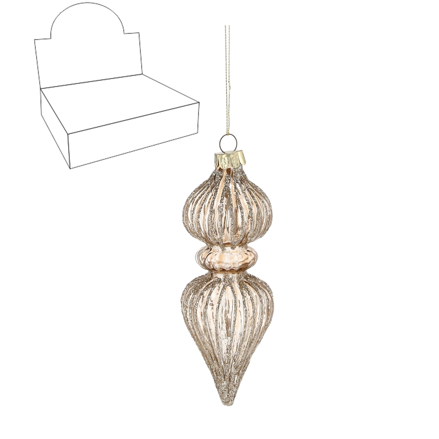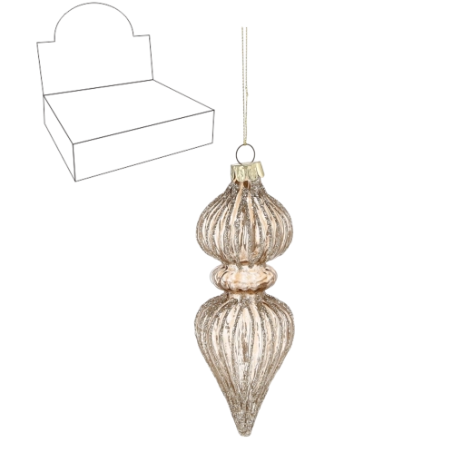 Dodejte vánočním svátkům barokní eleganci s prémiovými skleněnými ozdobami inspirovanými stylem Baroque. Každý kus je z kvalitního skla se zlatými detaily, které nádherně odrážejí světlo a vytvářejí luxusní vzhled na vašem stromku. Díky rozměrům 5 × 14,6 cm působí výrazně a stanou se středobodem sváteční dekorace.