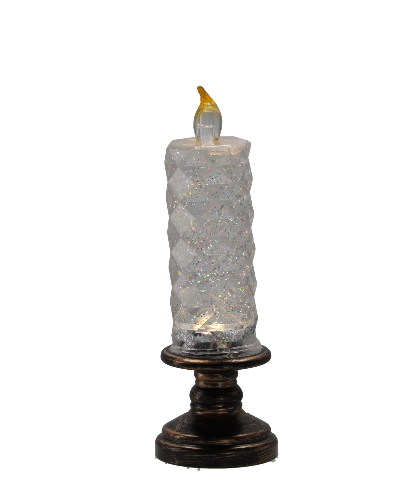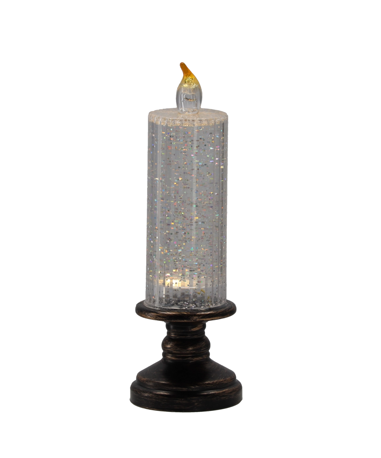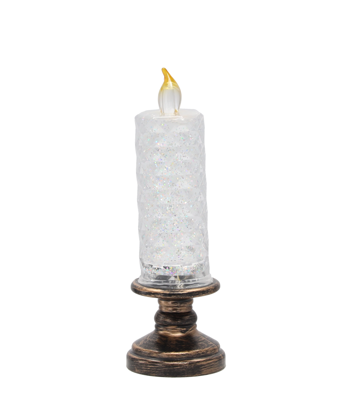 Stylová dekorativní LED svíčka s průhledným válcem plným třpytek a vintage podstavcem vykouzlí útulnou atmosféru během okamžiku. Po rozsvícení vytváří jemné teplé světlo a zářivý třpytivý efekt, který je ideální na stůl, komodu či okenní parapet. Napájení zajišťují baterie LR44, takže ji snadno umístíte kamkoli bez kabelů.