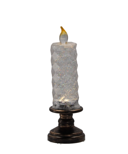 Tato elegantní LED svíčka kombinuje vzhled klasické svíce s moderním LED osvětlením. Průhledné tělo s třpytkami se po zapnutí rozzáří a vytvoří okouzlující efekt jiskření, který dodá interiéru slavnostní i celoroční kouzlo. Díky kompaktním rozměrům se skvěle hodí na dekoraci stolu, poličky i recepce.