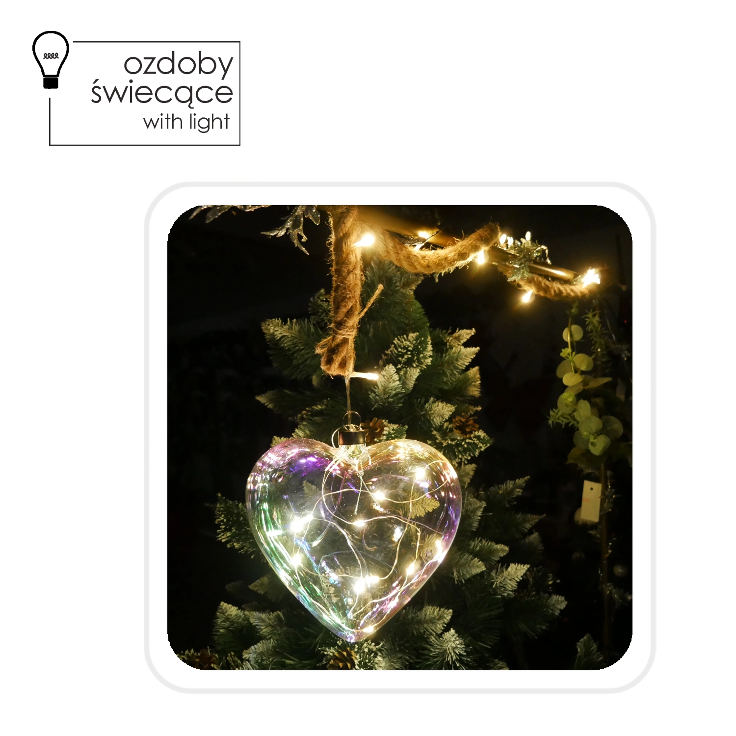 Vneste do domova teplou a romantickou atmosféru se skleněnou dekorací ve tvaru srdce s holografickým efektem a teplým bílým LED světlem. Díky rozměrům 17 × 5,5 × 17 cm se skvěle hodí na okno, stěnu či dveře. Jutový provázek dodává rustikální šarm a vestavěný časovač 6/18 h zajistí pohodlný provoz bez manuálního zapínání.