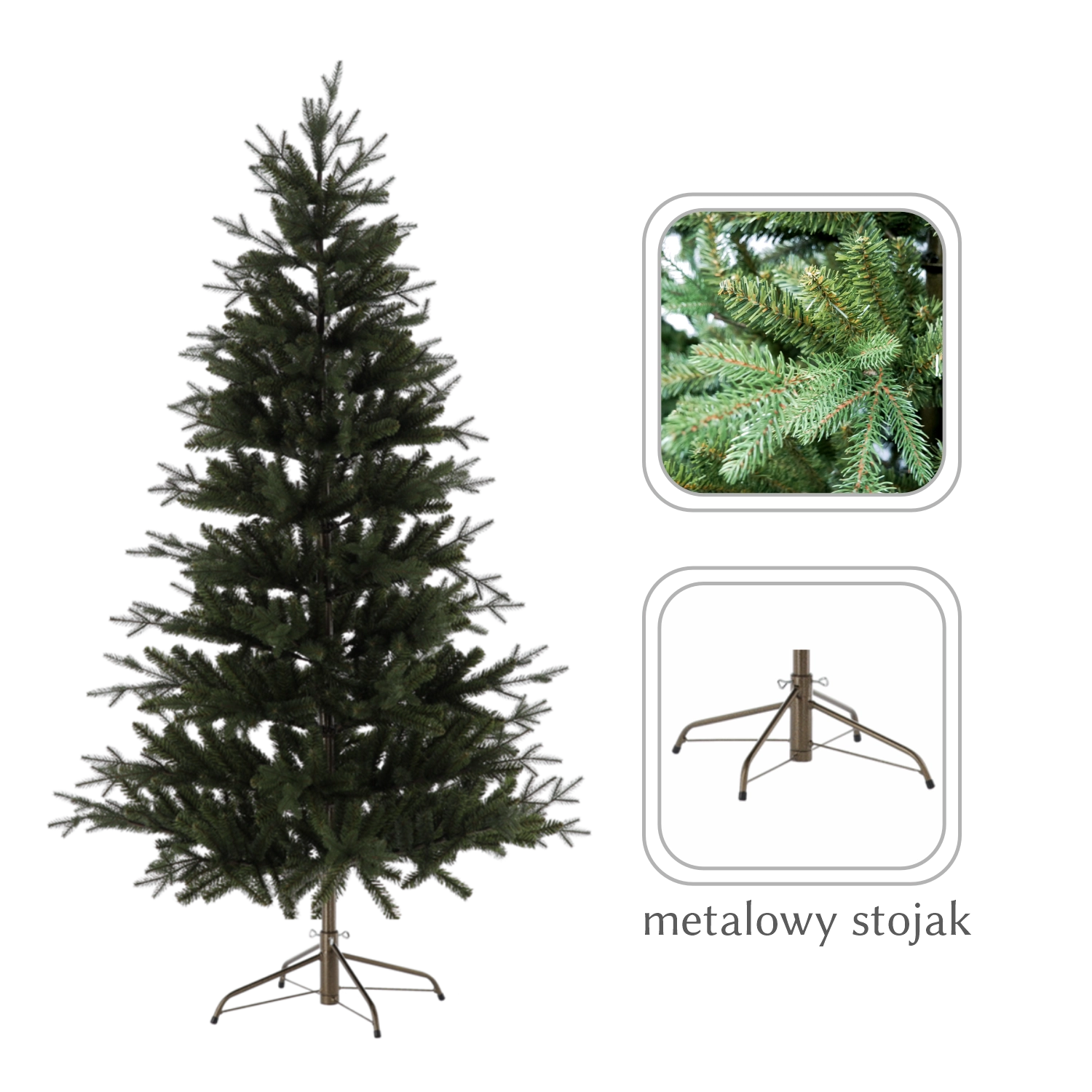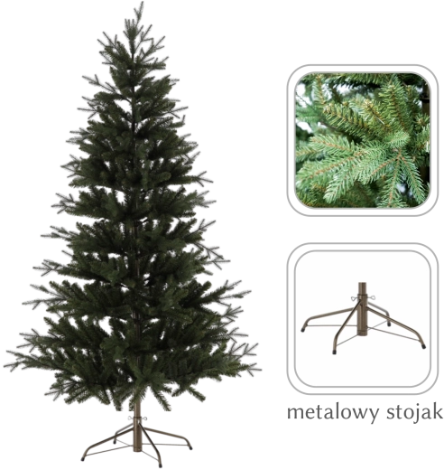 Díky kvalitnímu PVC materiálu jsou větve tvarovatelné, odolné a zachovávají si sytě zelenou barvu po mnoho sezón. Pevný kovový stojan zajišťuje stabilitu i při bohatém zdobení a usnadňuje bezpečné umístění stromku.