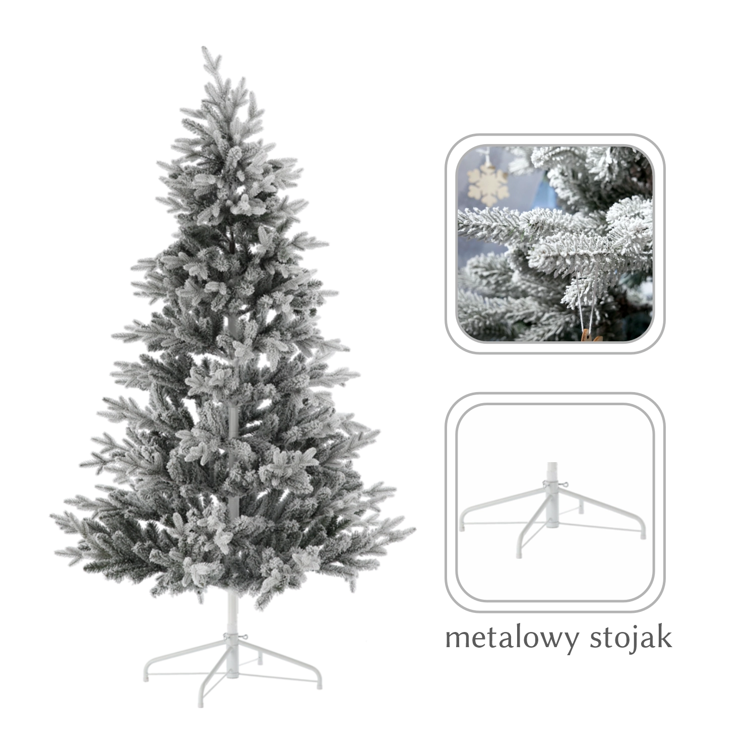 Umělý zasněžený smrk AGATA je skvělou volbou pro ty, kteří hledají stylovou a praktickou vánoční dekoraci. Přirozeně tvarované větve s bílým ojíněním vytvářejí dojem čerstvě zasněženého stromu, který dodá vašemu interiéru sváteční kouzlo bez opadávání jehličí.