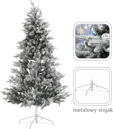 Syntetický vánoční stromek Agata s efektem zasněžení přináší autentický vzhled zimní přírody bez nepořádku po jehličí a bez nutnosti údržby. Zelené větve pokryté jemnou vrstvou "sněhu" vytvářejí sváteční atmosféru v každém interiéru – od domácností až po kanceláře a komerční prostory.
