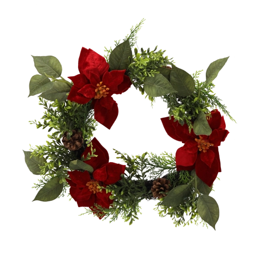 Elegantní vánoční věnec o průměru 40 cm s realistickou vánoční hvězdou (poinsecií) přinese do vašeho domova teplou sváteční atmosféru. Vyroben z kvalitních materiálů, věrně napodobuje přírodní větvičky a květy, je bezúdržbový a vhodný k zavěšení na dveře, stěnu i jako stolní dekorace.