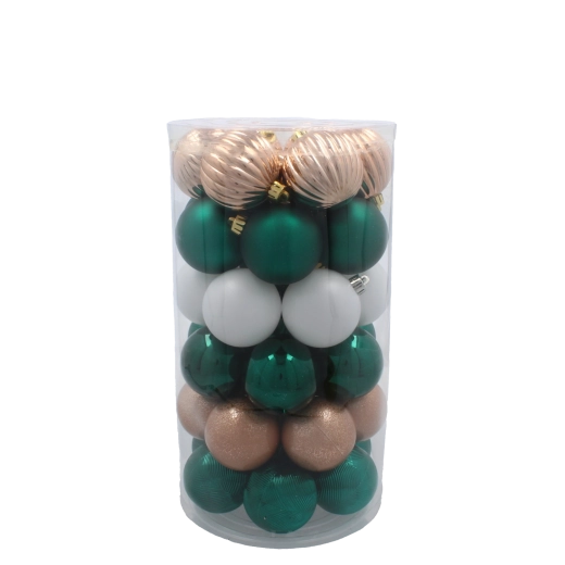 Sada vánočních koulí 6 cm – zelená, šampaňská a bílá, 41 ks