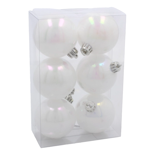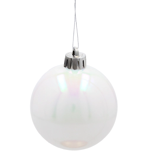 Vylaďte vánoční dekorace do posledního detailu. Perleťově bílé koule o průměru 6 cm přinášejí harmonii, nadčasovou eleganci a jemný odlesk světla, který podtrhne krásu vašeho stromku i dalších svátečních aranžmá. Díky odolnému plastu jsou vhodné do domácností s dětmi či domácími mazlíčky.